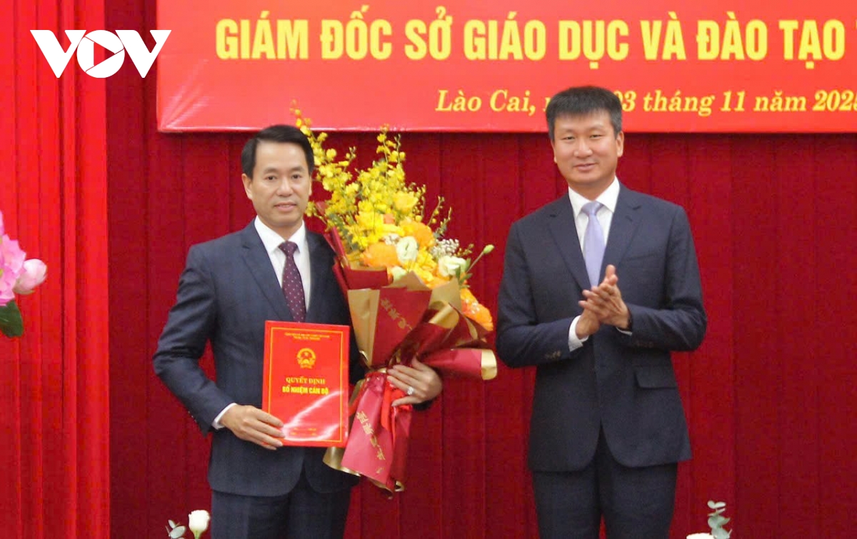 Chủ tịch UBND tỉnh Lào Cai trao quyết định cho Giám đốc Sở Giáo dục - Đào tạo