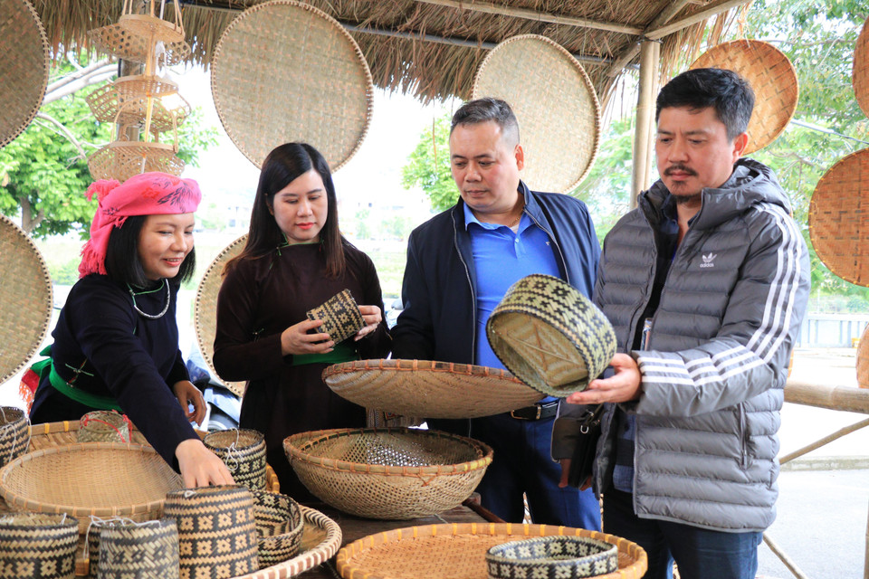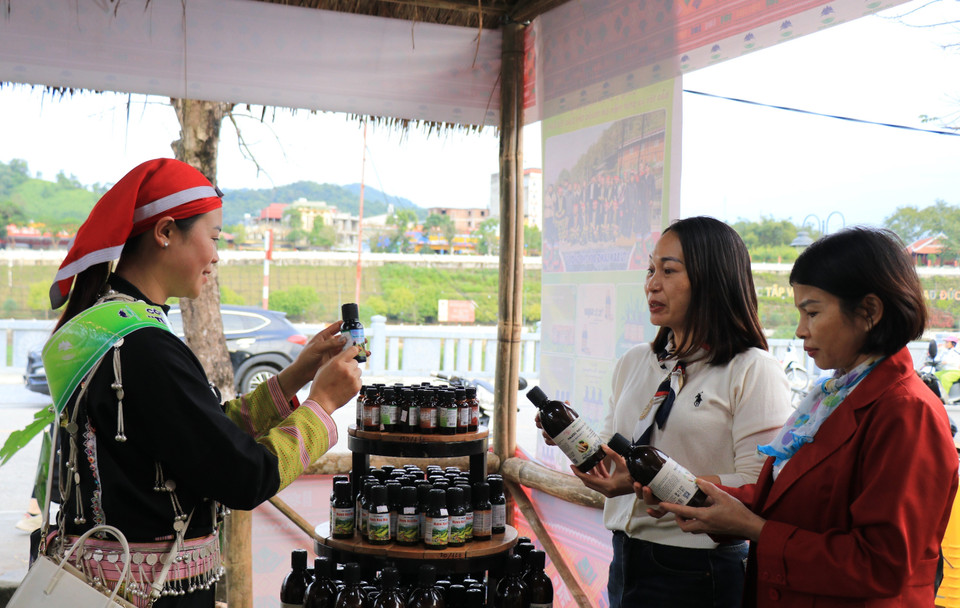 Các sản phẩm OCop của người dân được bày bán thu hút du khách mua sắm. (Ảnh: Tuấn Anh/TTXVN)