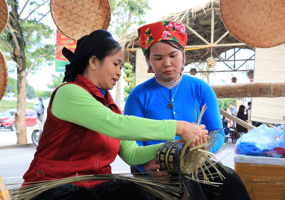 Nghề đan lát của người Tày Lào Cai được người dân tái hiện tại chợ Cốc Lếu xưa. (Ảnh: Tuấn Anh/TTXVN)