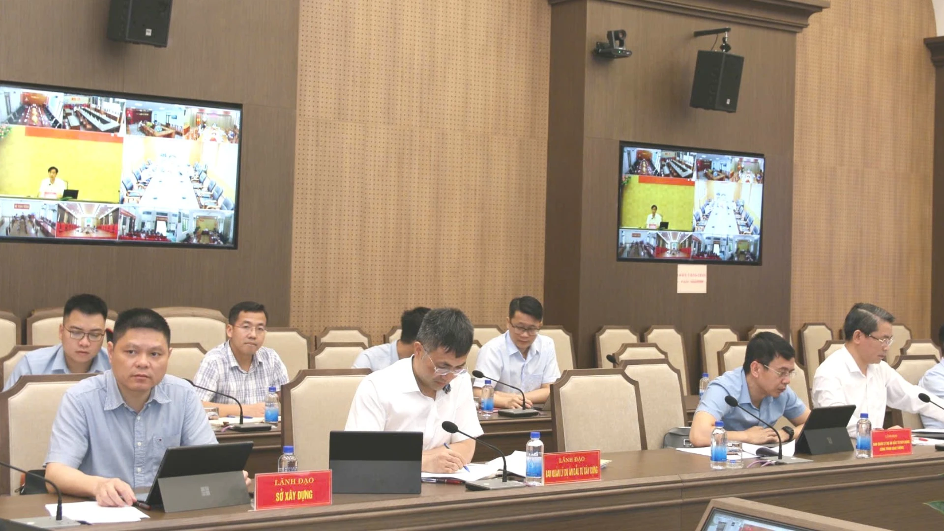 Lãnh đạo các sở, ngành và ban quản lý đầu tư khu vực thảo luận tại cuộc họp.