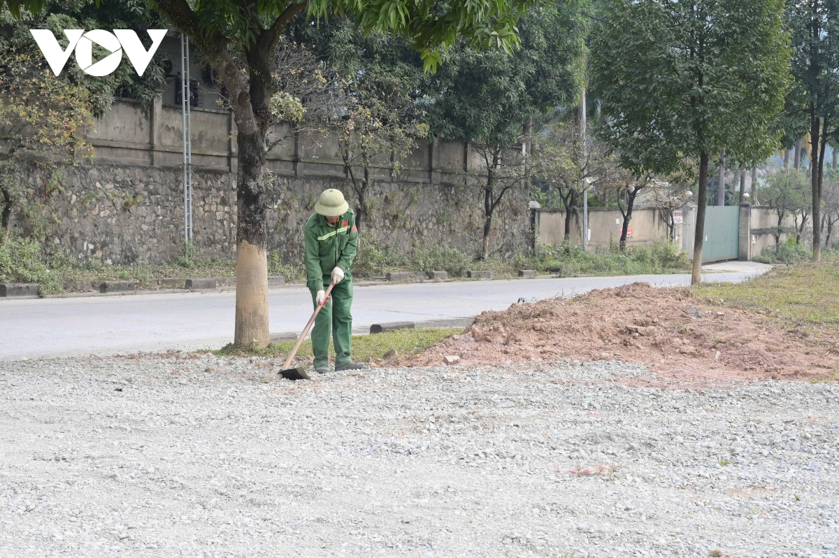 Dọn dẹp vệ sinh quanh khu vực diễn ra lễ khởi công