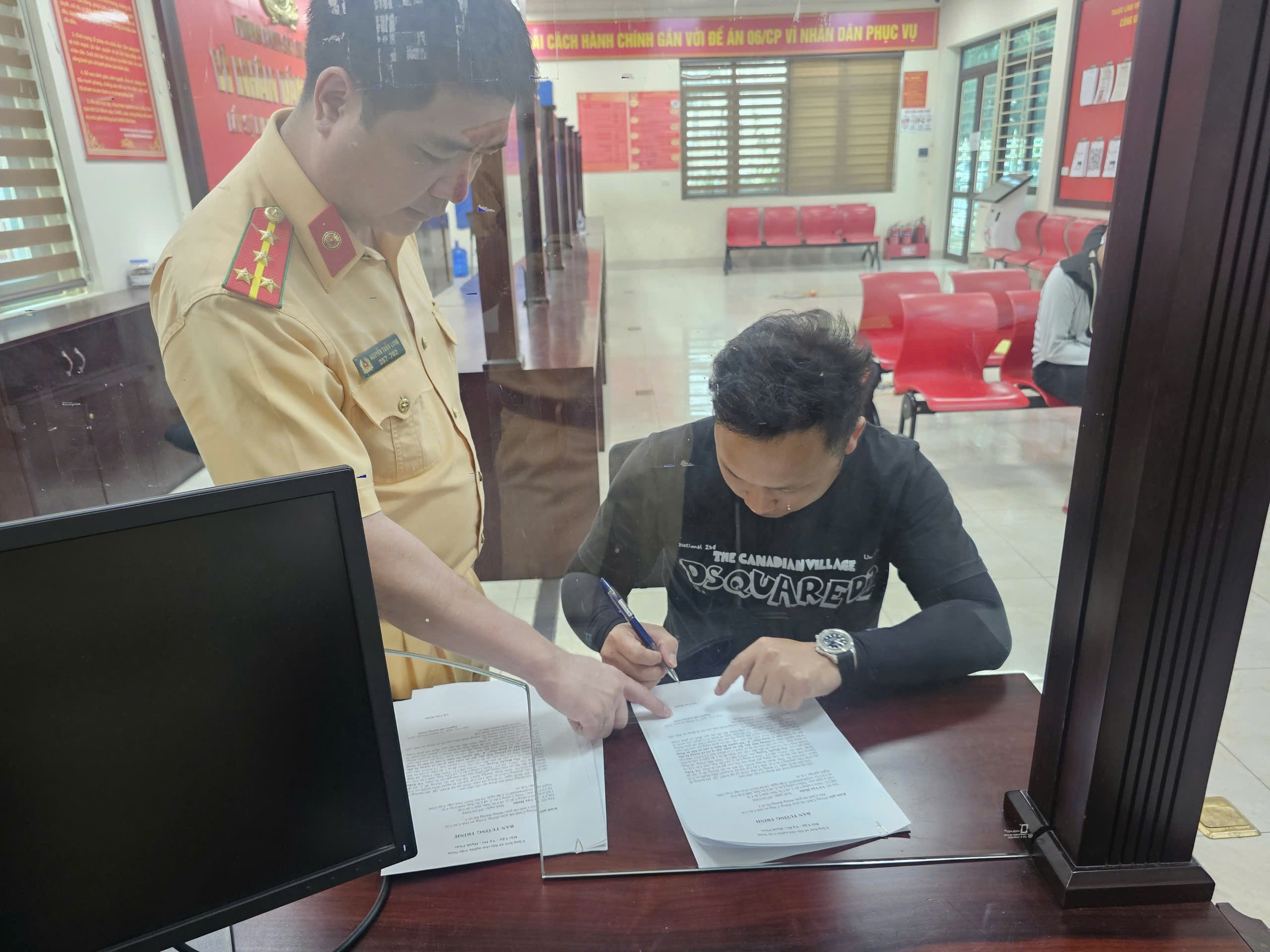 Lực lượng chức năng làm việc với người vi phạm.