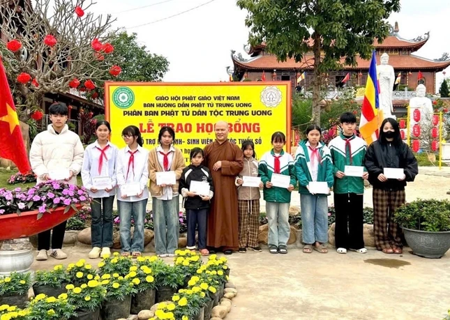 Phát biểu tại buổi trao tặng học bổng, Đại đức Thích Chân Định nhấn mạnh Phân ban Phật tử Dân tộc T.Ư cam kết sẽ đồng hành và hỗ trợ xuyên suốt quá trình học tập và rèn luyện của các em.
