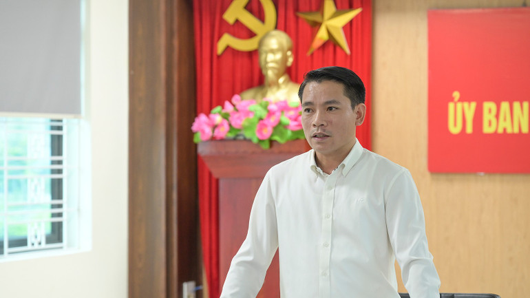 Chủ tịch Ủy ban nhân dân phường Cam Đường Nguyễn Xuân Nhẫn phát biểu về công tác phòng, chống mưa bão.