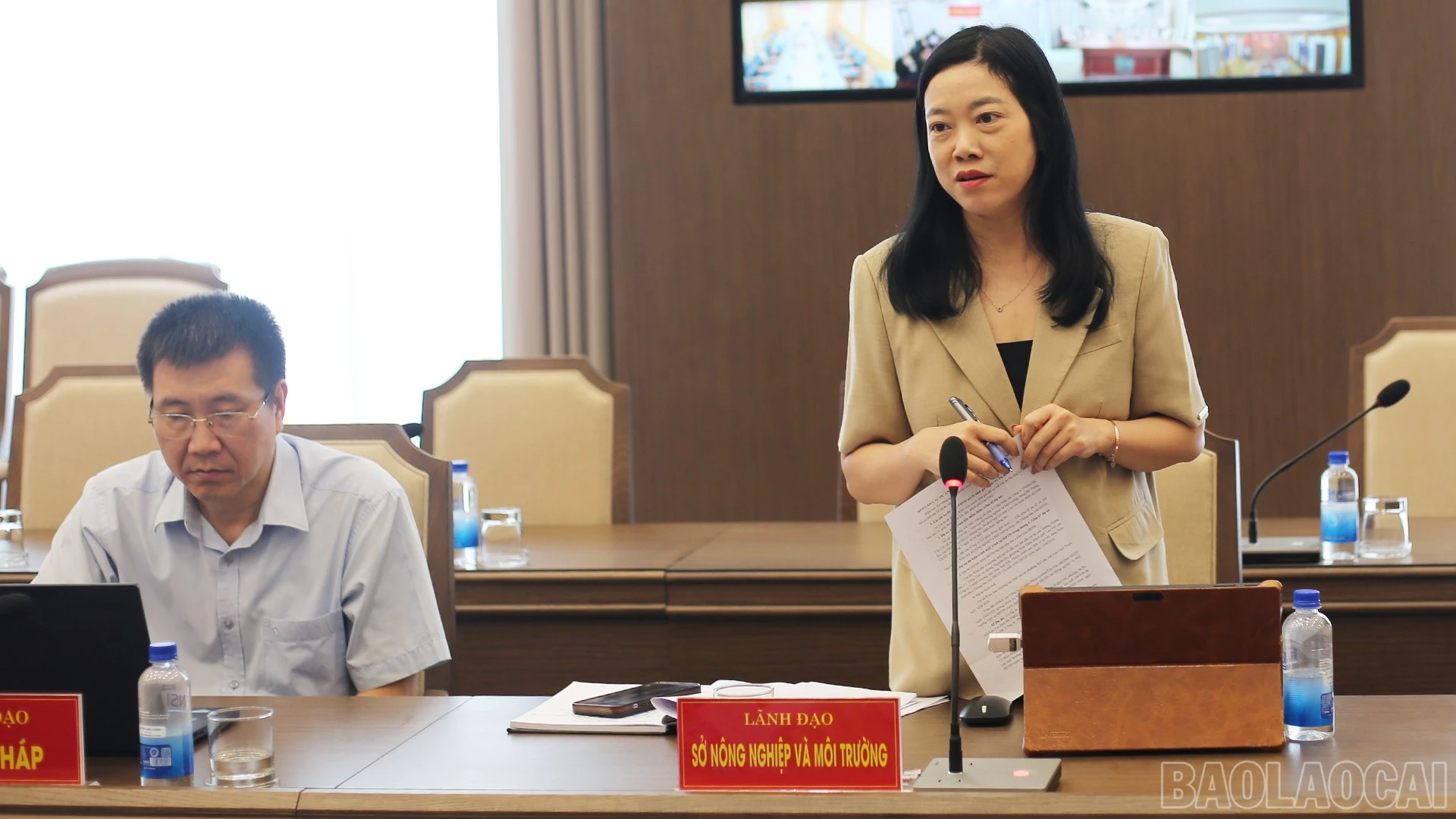 Lãnh đạo các sở, ngành phát biểu ý kiến tại cuộc họp.