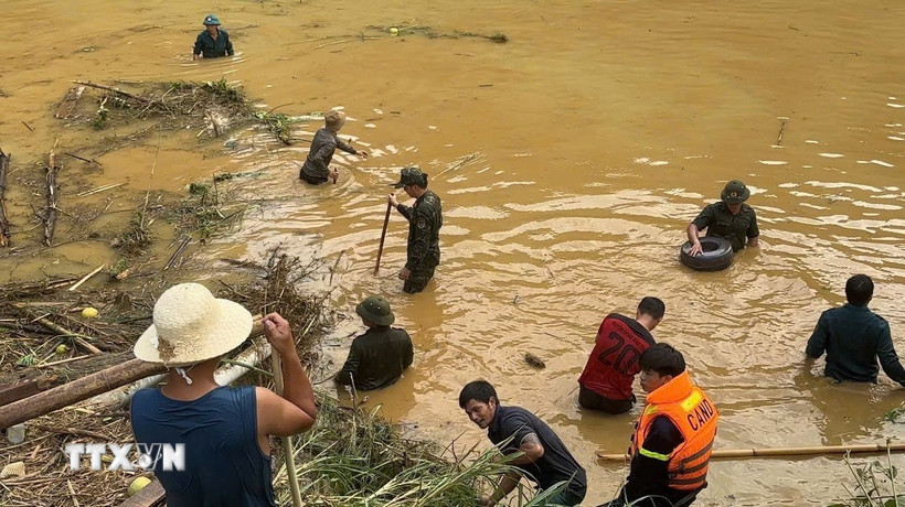 Các lực lượng tại chỗ tìm kiếm nạn nhân. (Ảnh: TTXVN phát)