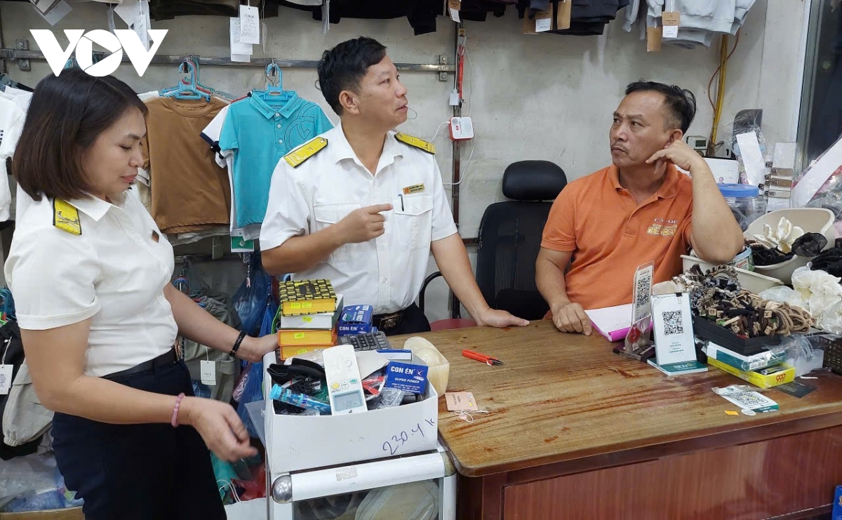 Cán bộ ngành Thuế Lào Cai tuyên truyền, hướng dẫn các hộ kinh doanh về các chính sách thuế