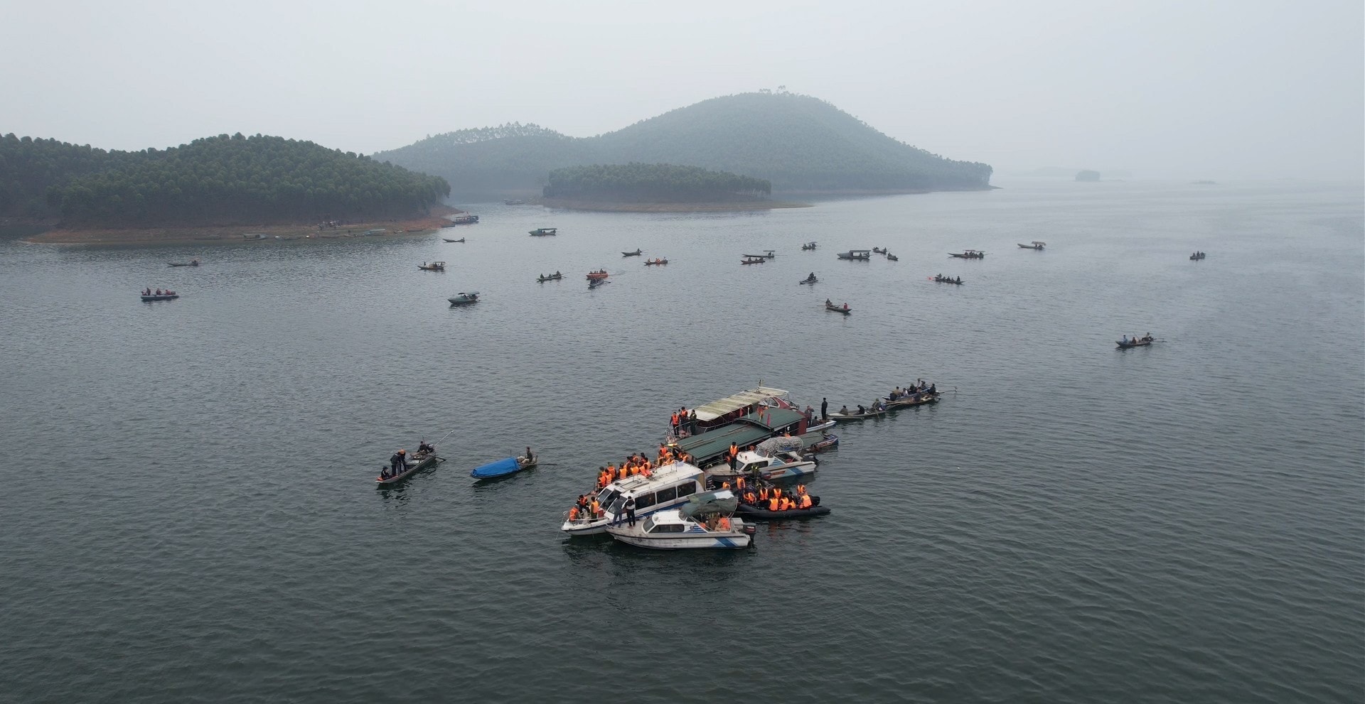 Toàn cảnh công tác tìm kiếm, cứu nạn trên hồ Thác Bà, các lực lượng được huy động tối đa phương tiện, nhân lực tổ chức tìm kiếm các nạn nhân.