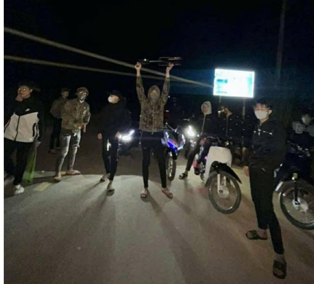 Khi không tìm được người, các đối tượng đã để xe dưới lòng đường. Đối tượng Phạm Trọng Tú cầm trên tay 1 khẩu súng cao su bắn đạn bi sắt gắn đèn laser, vừa quay clip vừa chửi bới, gây mất trật tự công cộng, sau đó đăng tải đoạn clip lên trang Facebook cá nhân.