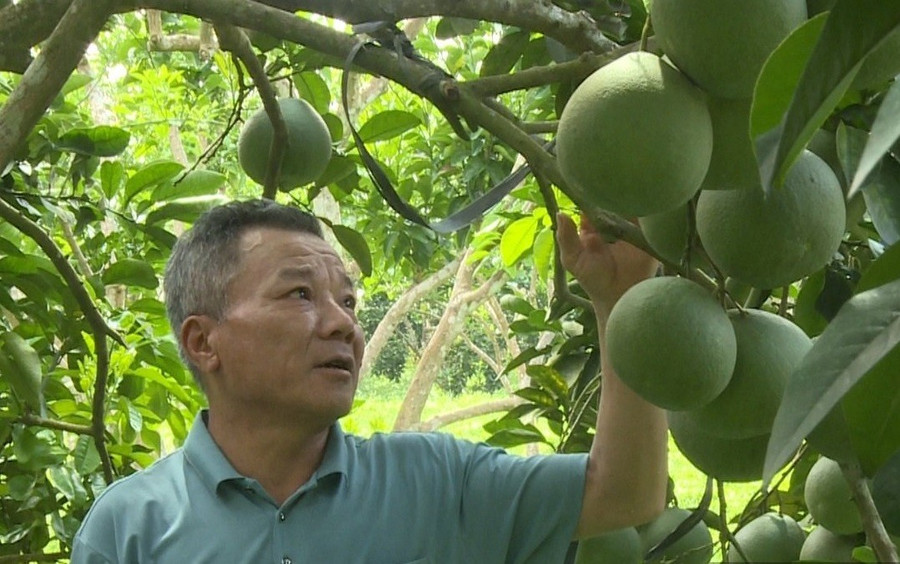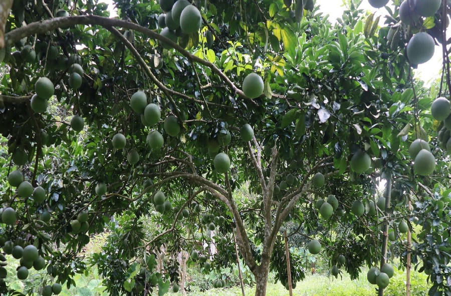 Vườn bưởi trĩu quả của gia đình ông Dũng.