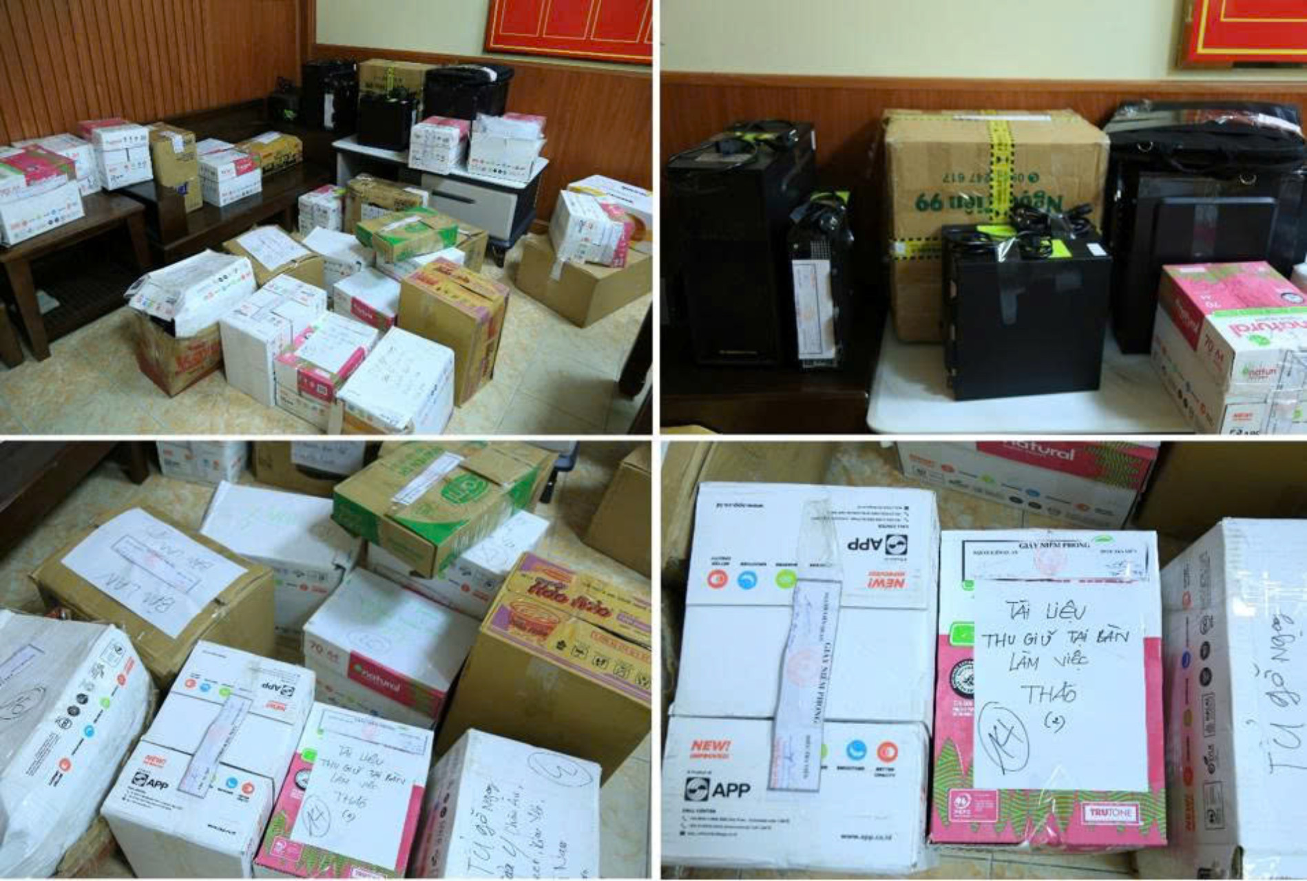 Số giấy tờ, tài liệu do cơ quan công an thu giữ. Ảnh: Đ.A