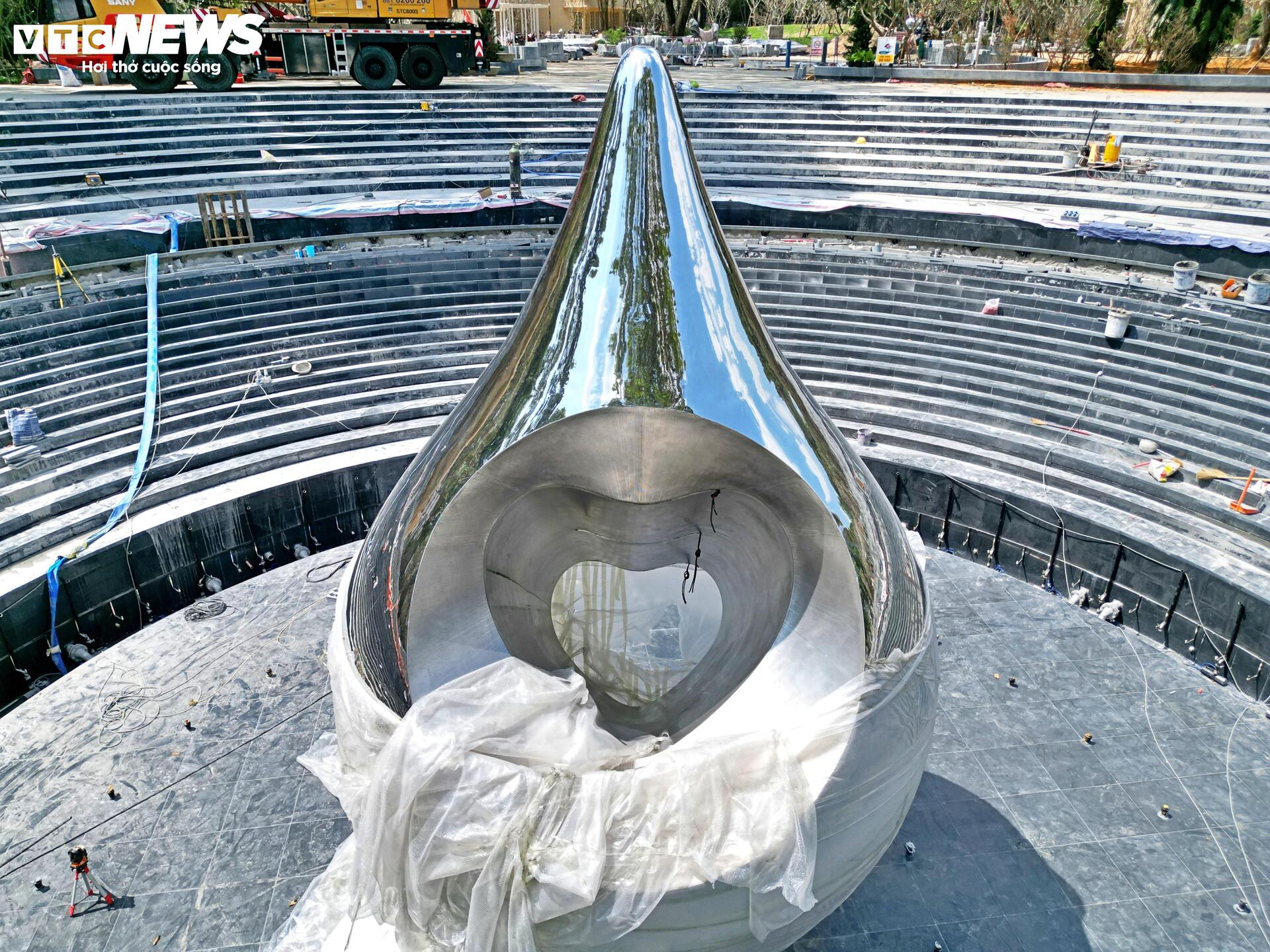 Theo chủ đầu tư, biểu trưng giọt nước gợi nhắc đến giọt nước mắt của nỗi buồn, nhưng với trái tim được đặt bên trong, mang ý niệm về lòng trắc ẩn và tình yêu thương của con người. Công trình có chu vi khoảng 13m, cao 6m, sử dụng chất liệu inox gương, phản chiếu hình ảnh xung quanh. Thiết kế này được xem như một thông điệp về sự sẻ chia, kết nối và đồng cảm trong cộng đồng.