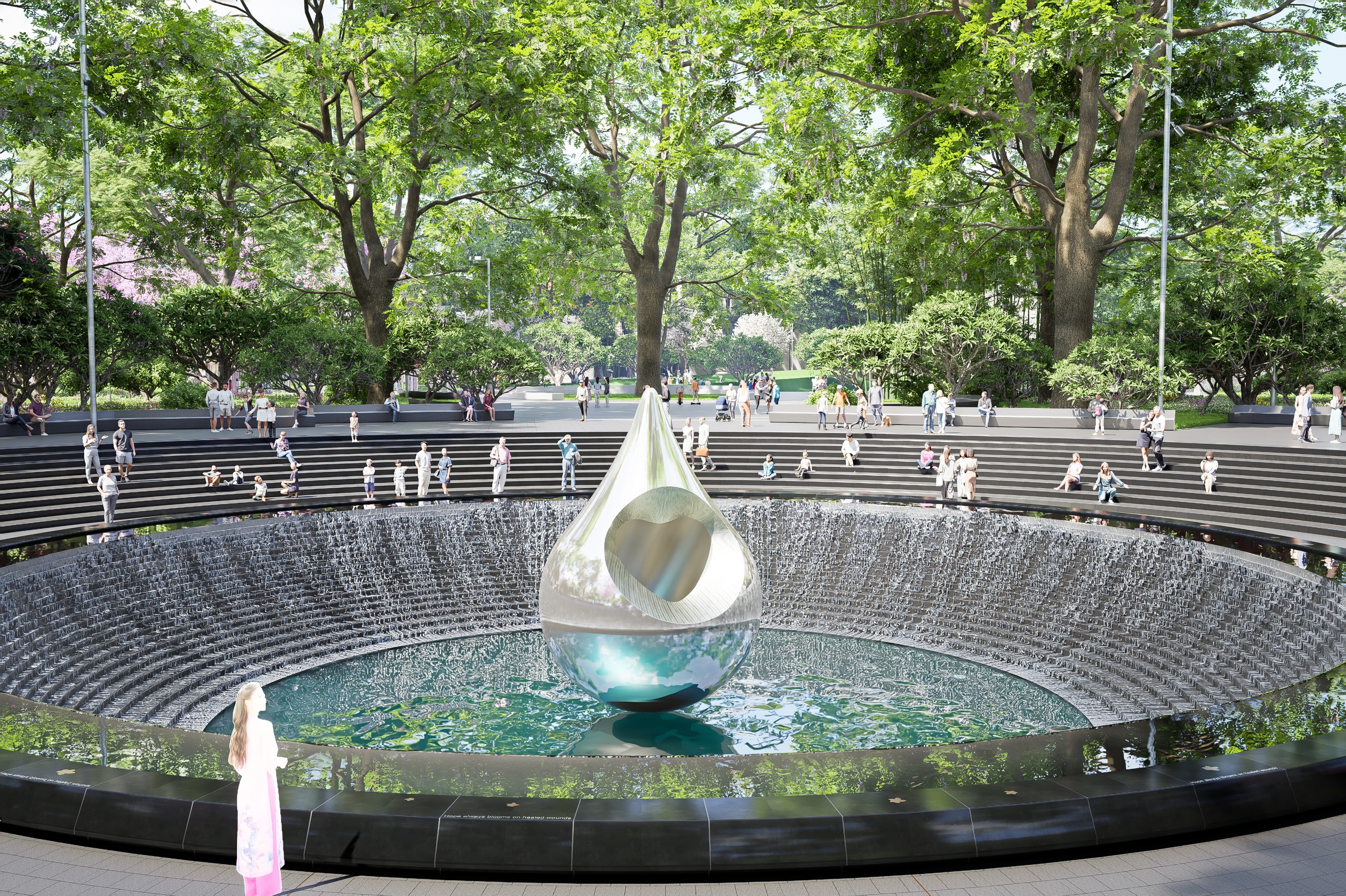 Phối cảnh biểu trương hình giọt nước trong công viên số 1 Lý Thái Tổ. (Ảnh: Chủ đầu tư)