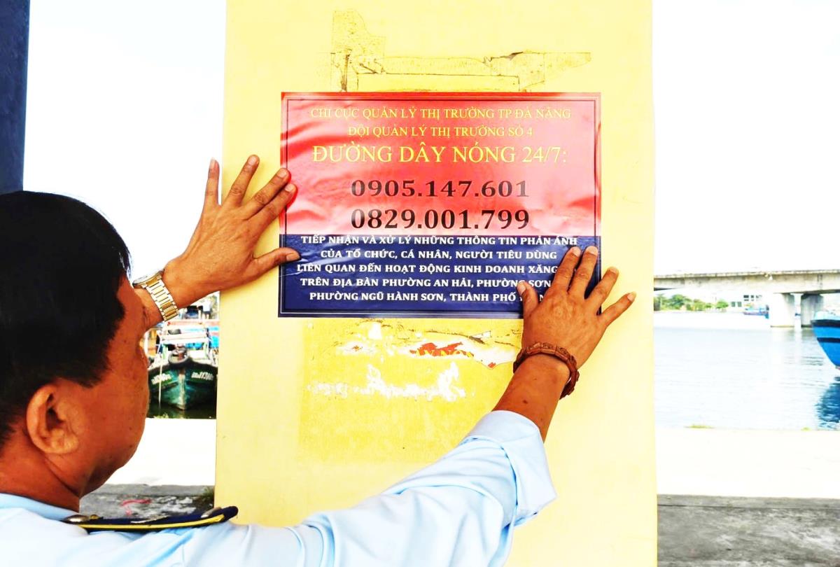 Lực lượng QLTT TP Đà Nẵng tiến hành niêm yết các "đường dây nóng" tại các cửa hàng xăng dầu trên địa bàn TP.