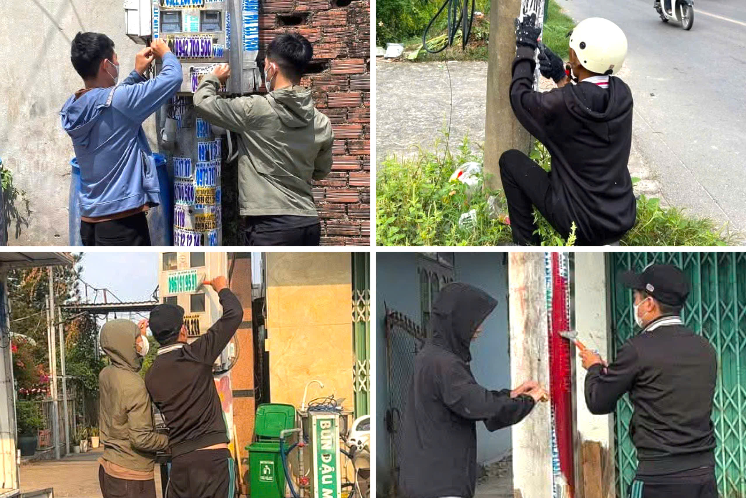 Theo cơ quan công an, nhóm thanh niên đã dán, phát tán nhiều tờ rơi quảng cáo liên quan đến hoạt động cho vay tài chính không đúng quy định, có dấu hiệu liên quan “tín dụng đen”, làm ảnh hưởng đến mỹ quan đô thị và trật tự công cộng.