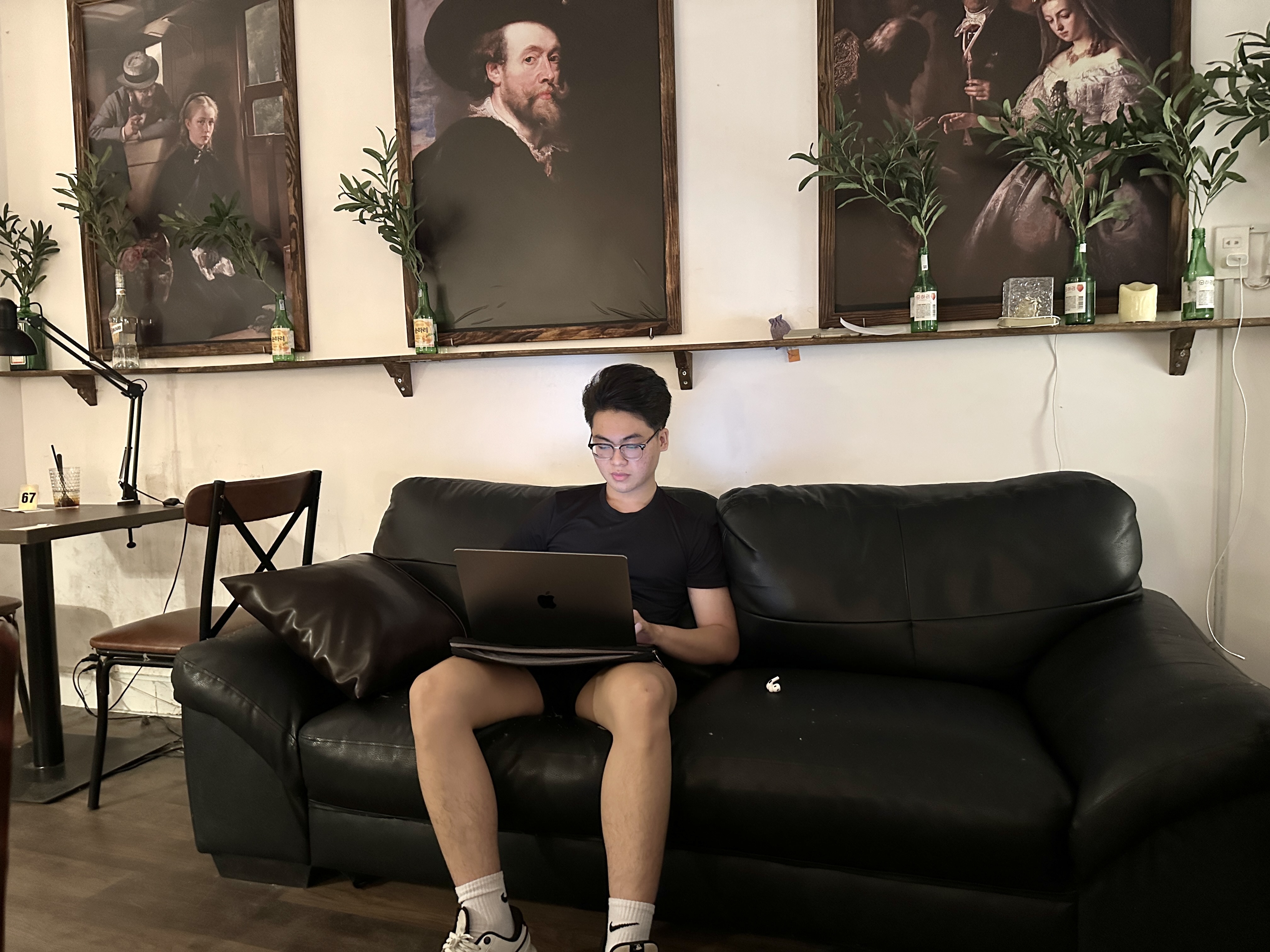 Ngay từ khi quán mở cửa, Đăng Khoa (sinh năm 2006, quê Long An) đã có mặt tại quán. Góc sofa trở thành "văn phòng tạm thời" để anh xử lý những đầu việc còn lại trước kỳ nghỉ.
