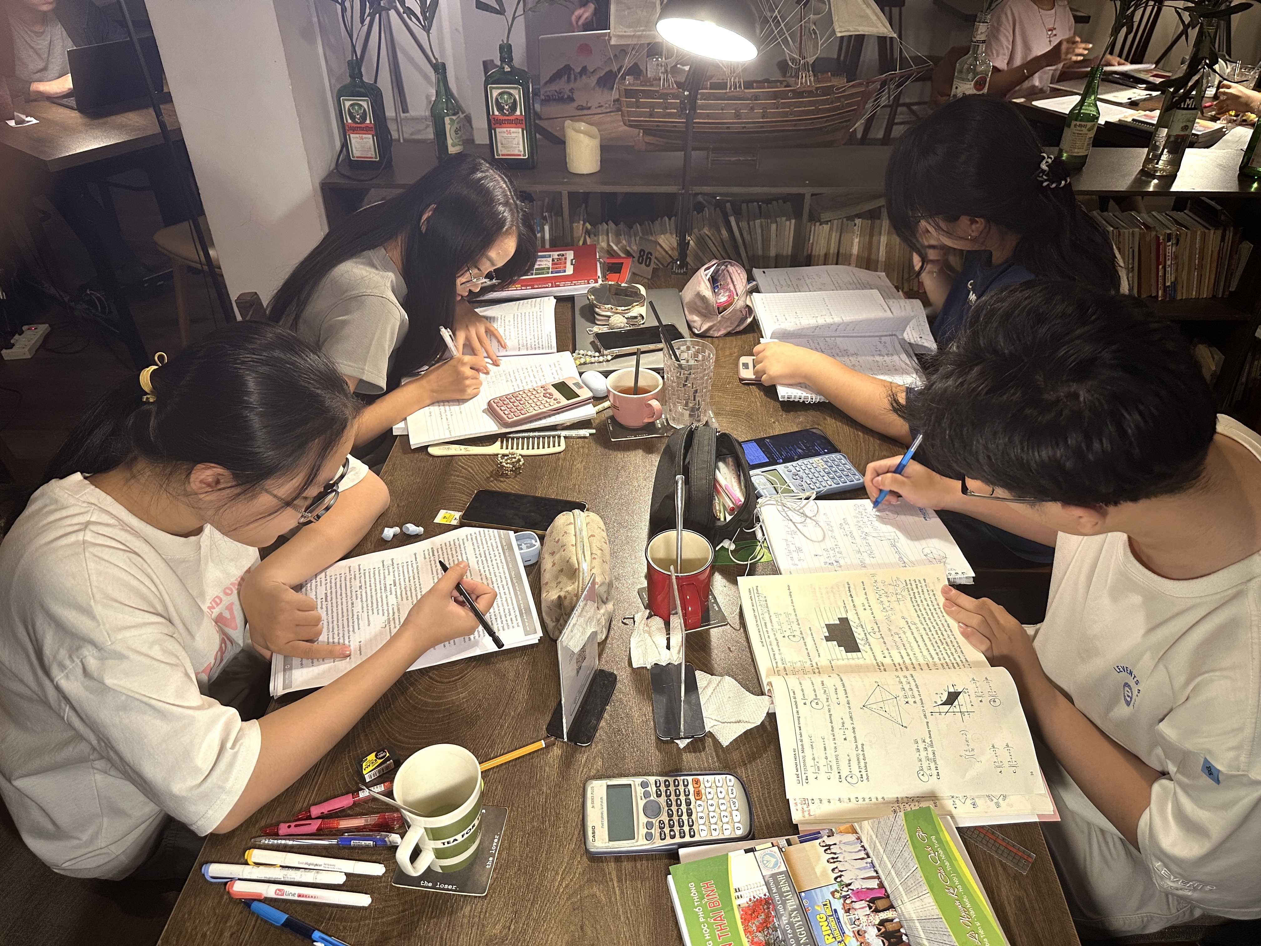 Theo Thùy, thời điểm sau Tết là giai đoạn nhiều bài kiểm tra và tăng tốc ôn thi. Vì vậy, những ngày cuối năm được xem như thời điểm "chạy trước" tiến độ. "Giờ cố nhanh một chút để sau này đỡ cực hơn. Thay vì ở nhà chơi, nhóm chúng tôi ra đây học cùng nhau cho có động lực", Thùy cho biết và dự định ở lại đến khi quán đóng cửa.