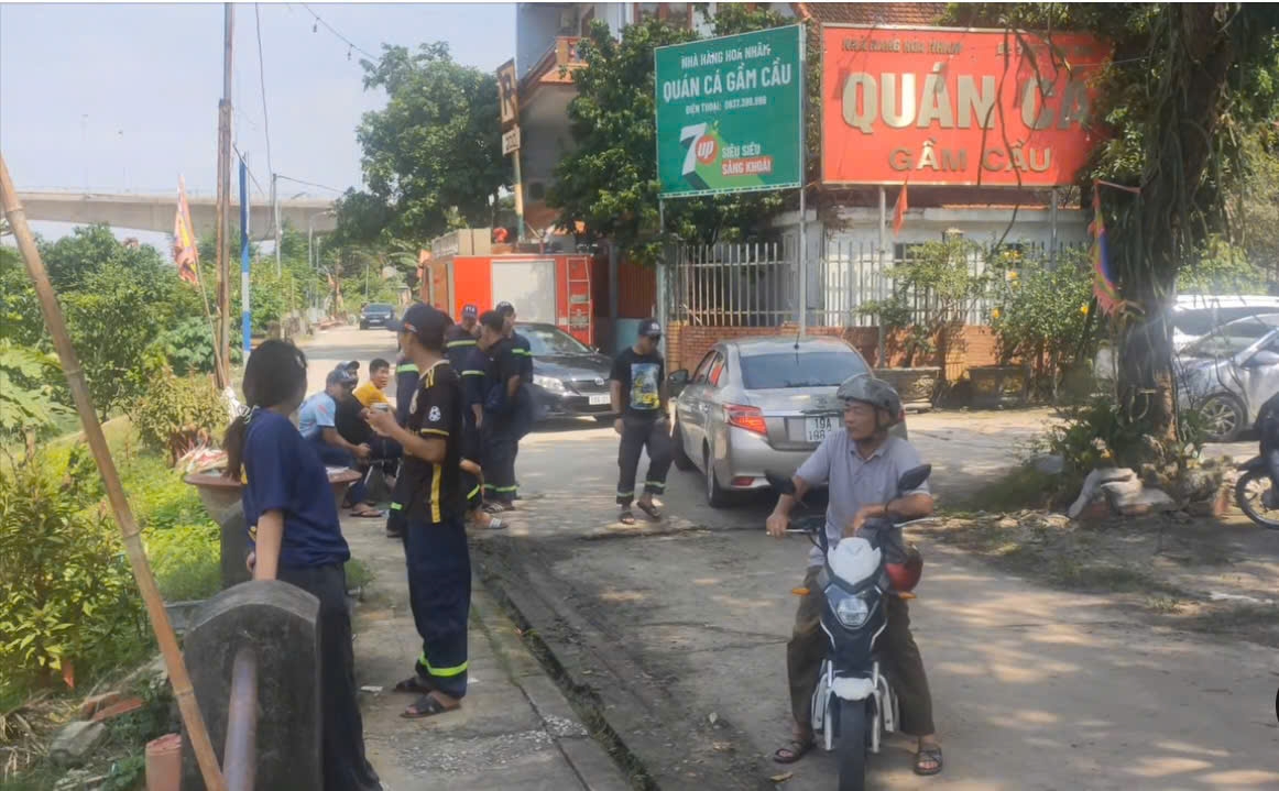 Người dân theo dõi sự việc trên bờ sông Lô.