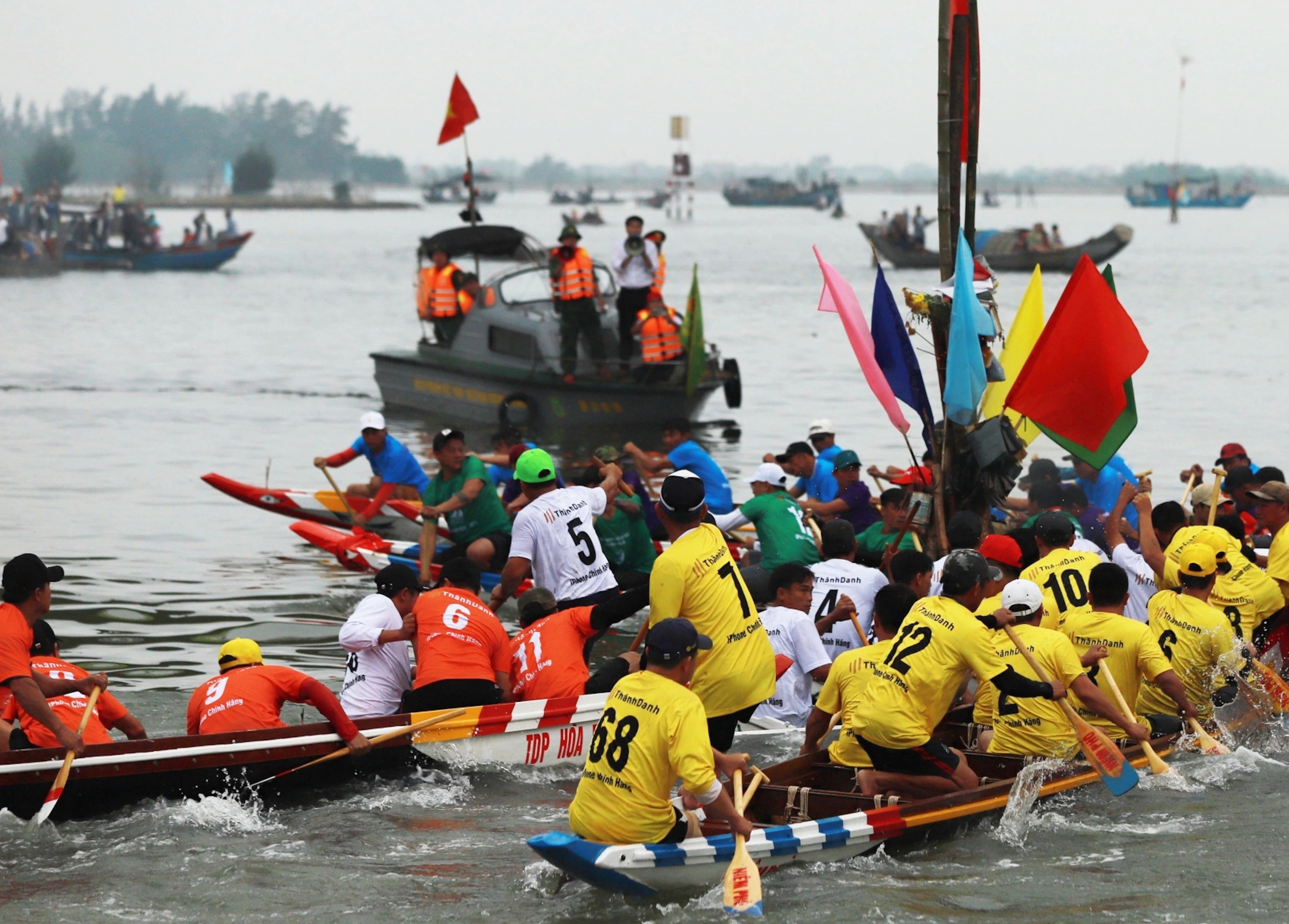Đua ghe tại lễ hội cầu ngư làng Thai Dương Hạ (phường Thuận An, TP Huế)