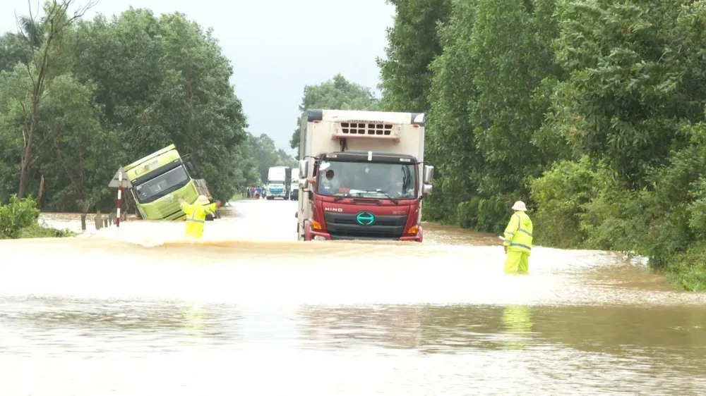 Tại hai xã Hòa Vang, Đại Lộc, Thiếu tướng Nguyễn Hữu Hợp yêu cầu công an các xã, cảnh sát giao thông phối hợp chính quyền huy động nhân vật lực nhanh chóng khơi thông dòng chảy; đồng thời mở đường tạm, đảm bảo an toàn cho người, phương tiện lưu thông.