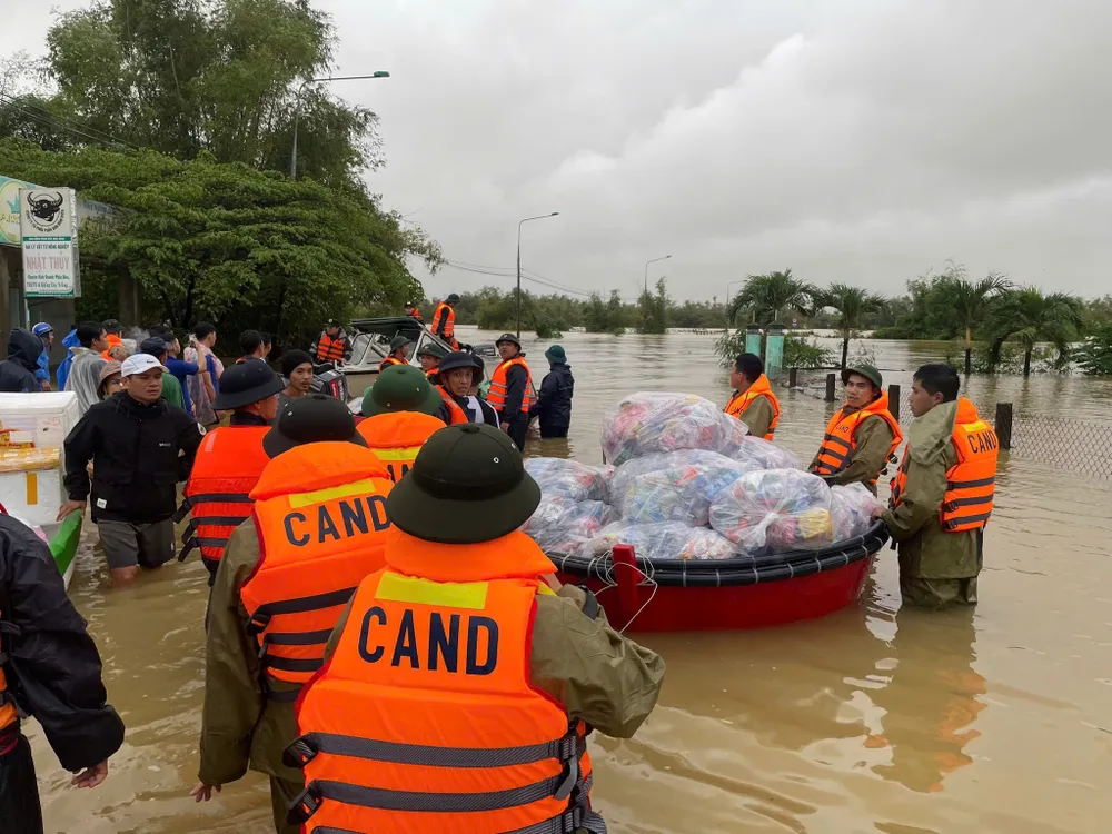 Chiều cùng ngày, 500 suất quà cứu trợ đã được đoàn viên thanh niên Công an TP Đà Nẵng tập kết tại khu vực Điện Bàn để kịp thời đưa đến người dân bị ngập sâu, cô lập trong chiều và tối nay.