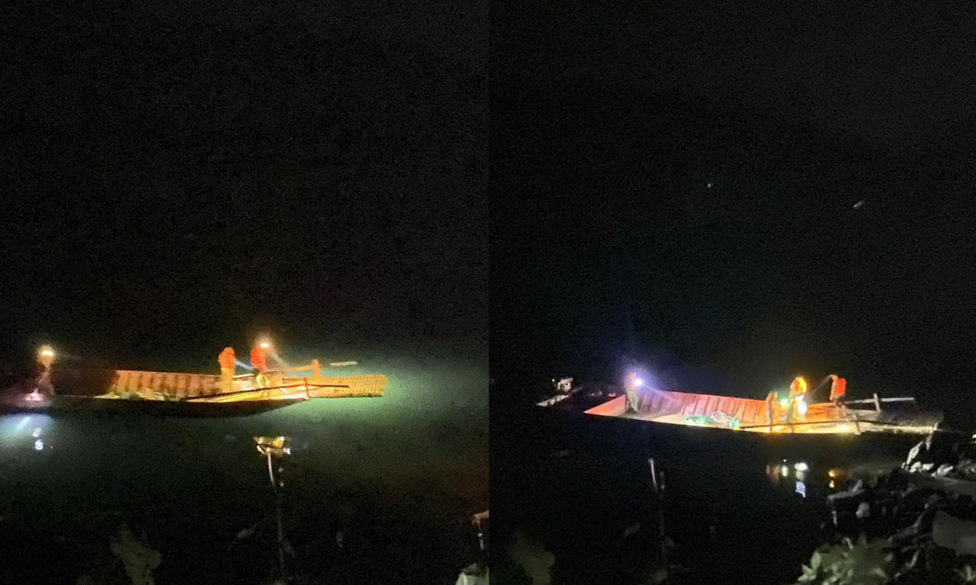 Cảnh sát xuyên đêm tìm kiếm 2 nạn nhân. (Ảnh: Công an tỉnh Tuyên Quang)