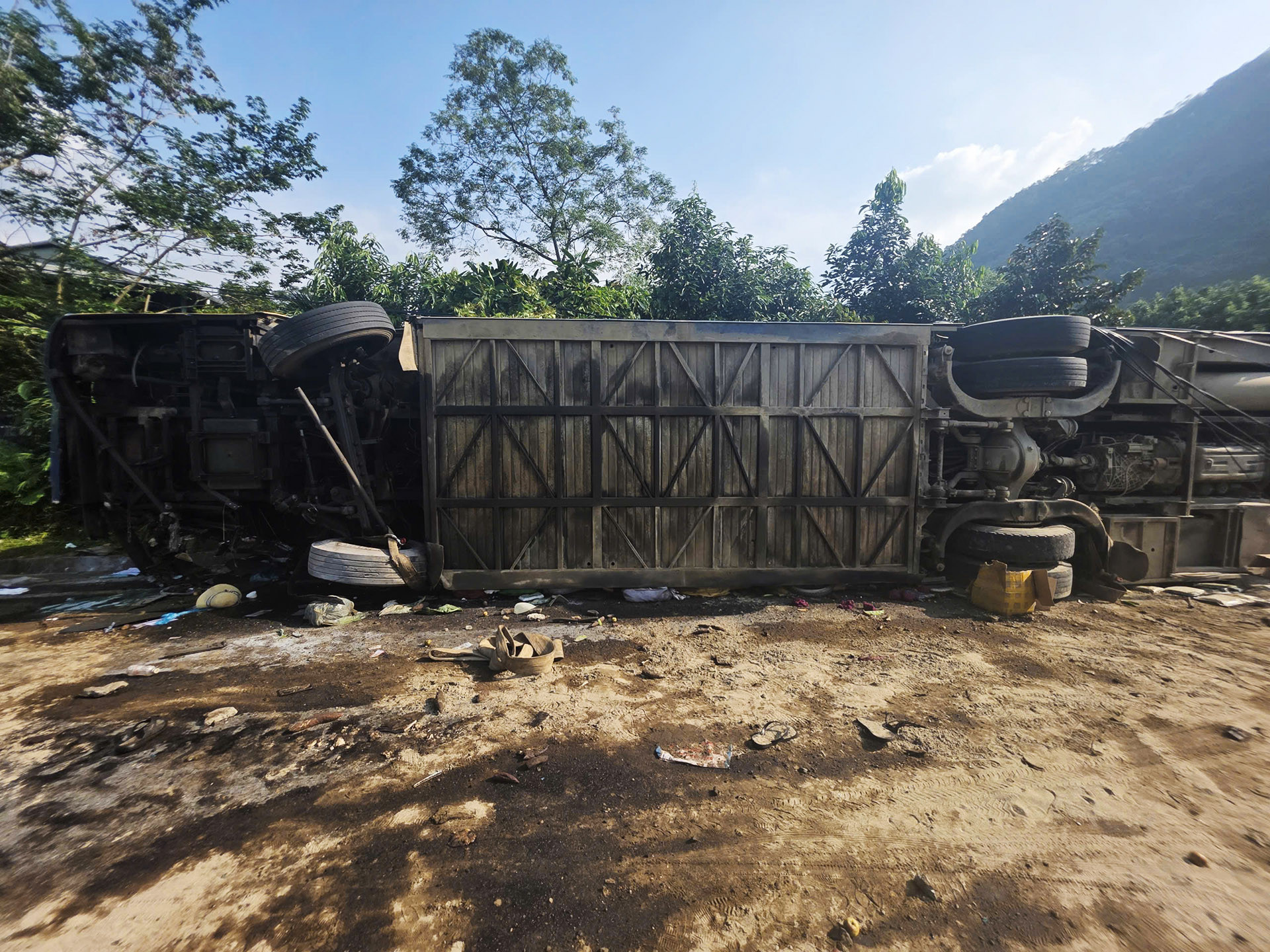 Vụ lật xe khách khiến ít nhất 2 người tử vong. Ảnh: H.T
