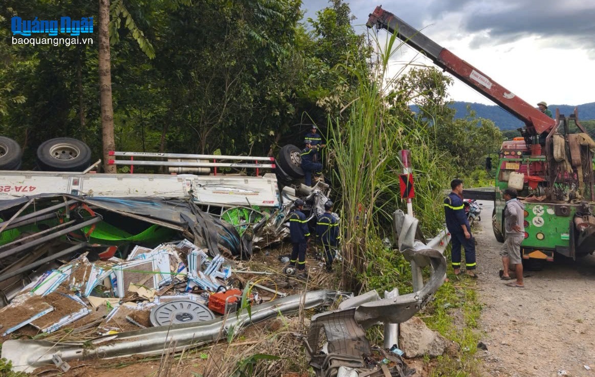 Khoảng 13 giờ, khi đến Km 23+300, thuộc địa phận xã Rờ Kơi, xe bị mất lái rồi đâm vào mép đường phía trái, lật nghiêng bên đường.