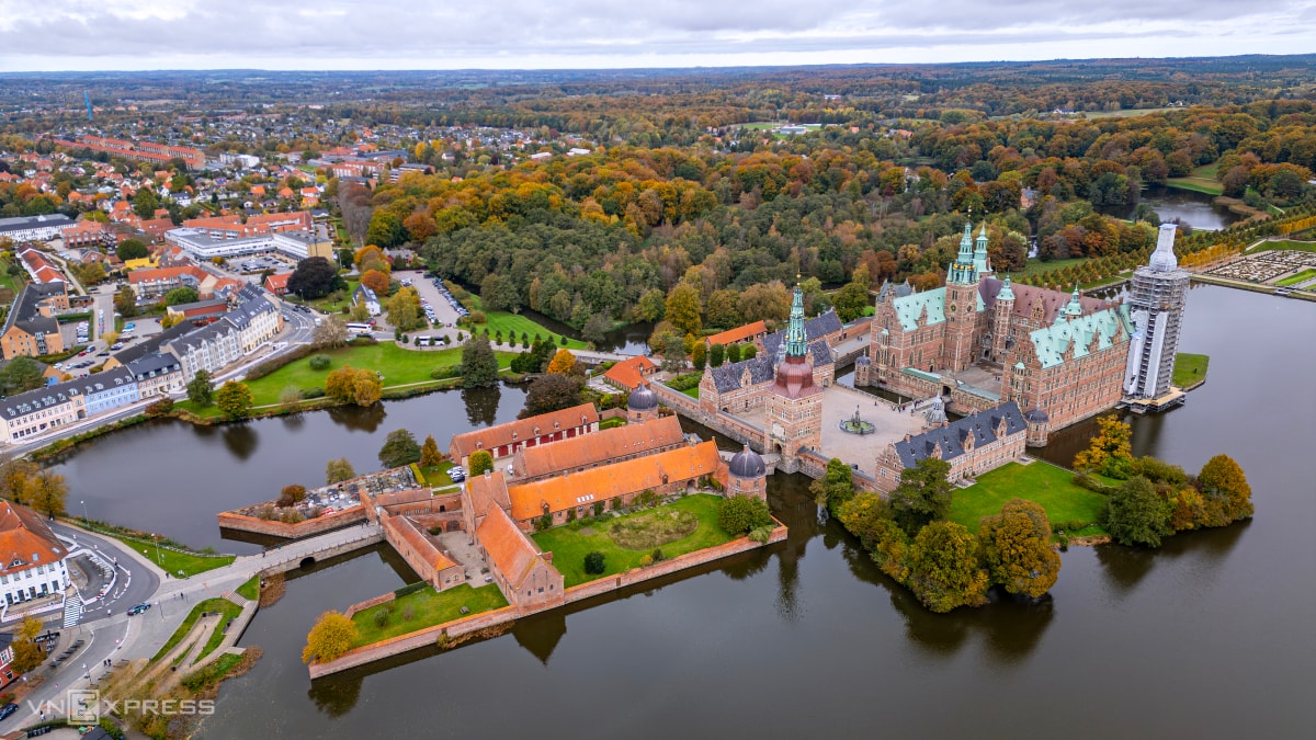 Lâu đài Frederiksborg tọa lạc trên ba hòn đảo nhỏ, tạo nên một cảnh quan ấn tượng.