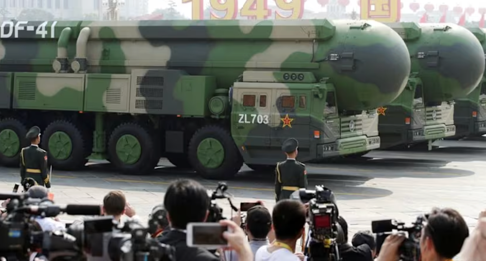 Phương tiện quân sự chở tên lửa đạn đạo liên lục địa DF-41 diễu hành qua Quảng trường Thiên An Môn, Trung Quốc. (Ảnh: Reuters)