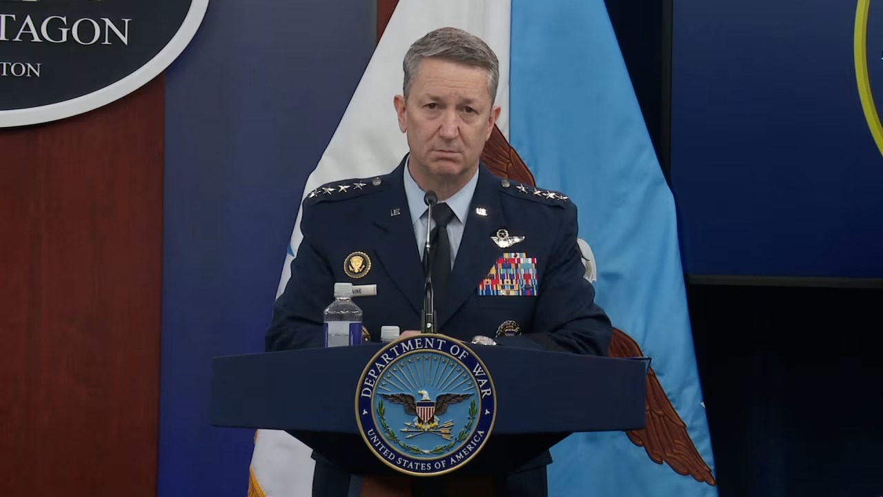 Chủ tịch Hội đồng Tham mưu trưởng Liên quân Mỹ - Tướng Dan Caine tại cuộc họp báo ngày 4-3. Ảnh: POOL