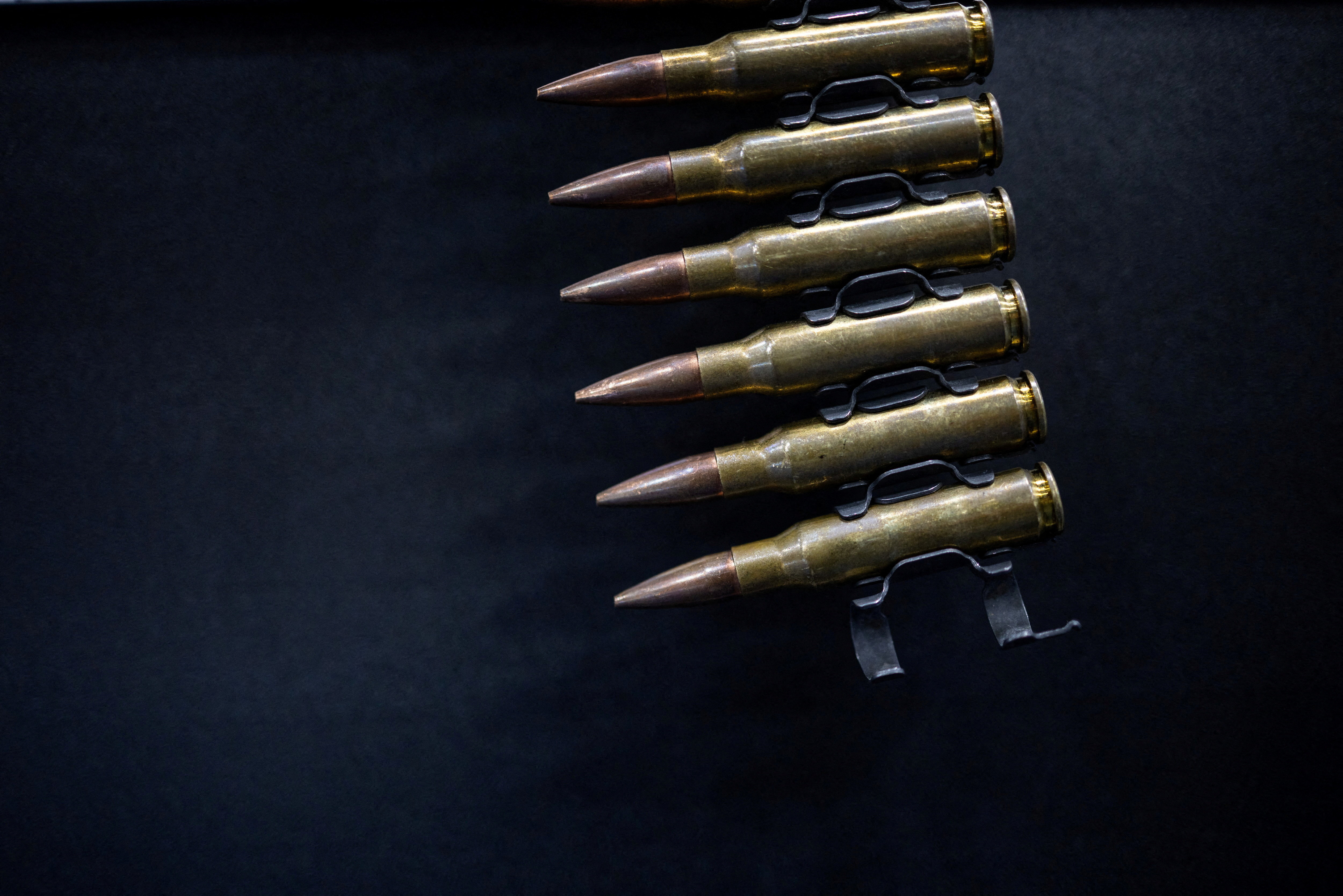 Đạn cỡ 7,62x51mm tiêu chuẩn NATO được trưng bày tại một gian hàng triển lãm trong khuôn khổ hội nghị và triển lãm thường niên của Hiệp hội Súng trường Quốc gia (NRA) ở Houston, bang Texas, Mỹ, ngày 18/4/2026. (Ảnh: REUTERS/Carlos Barria)