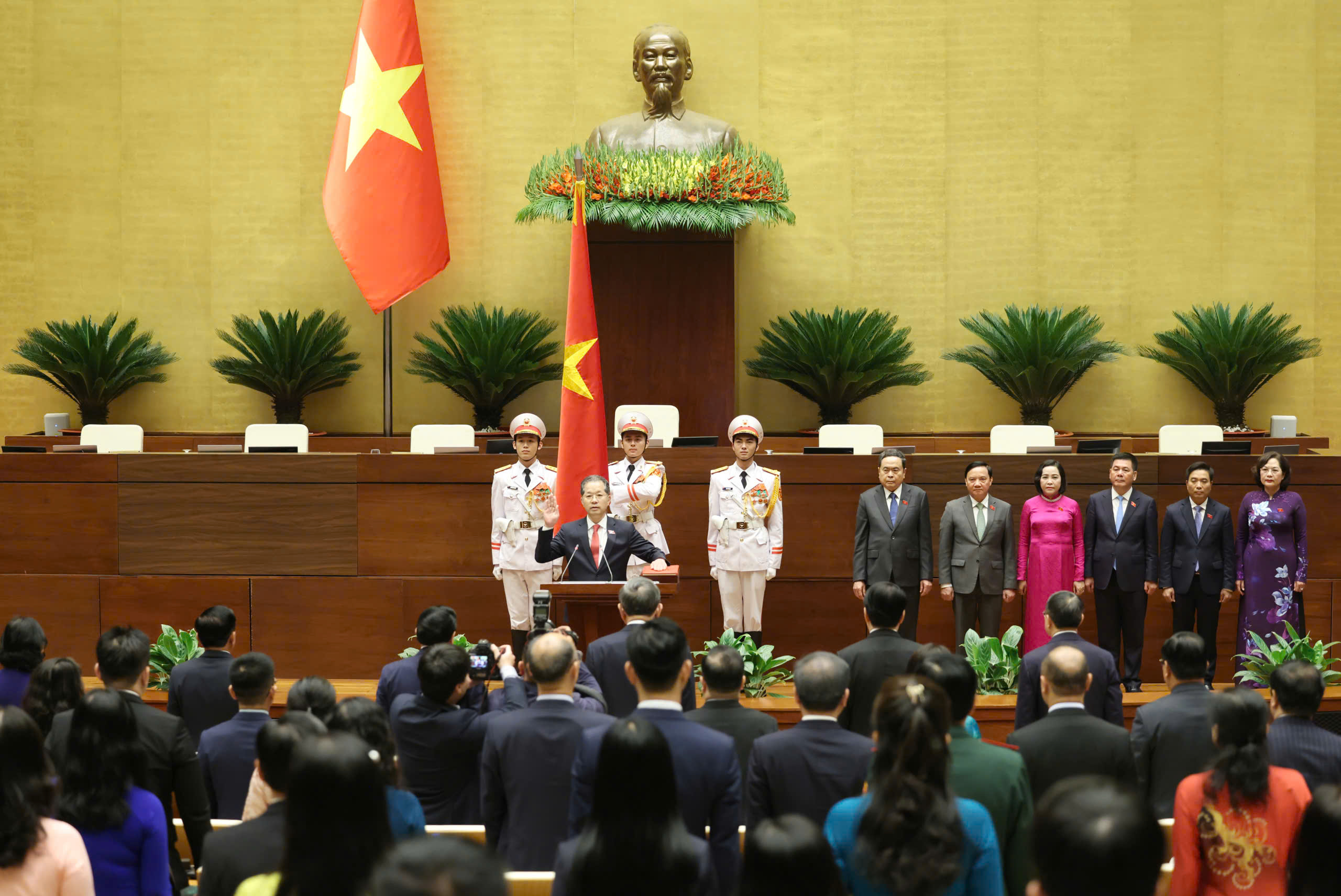 Chánh án Tòa án nhân dân tối cao Nguyễn Văn Quảng thực hiện nghi thức tuyên thệ. Ảnh: QUANG PHÚC