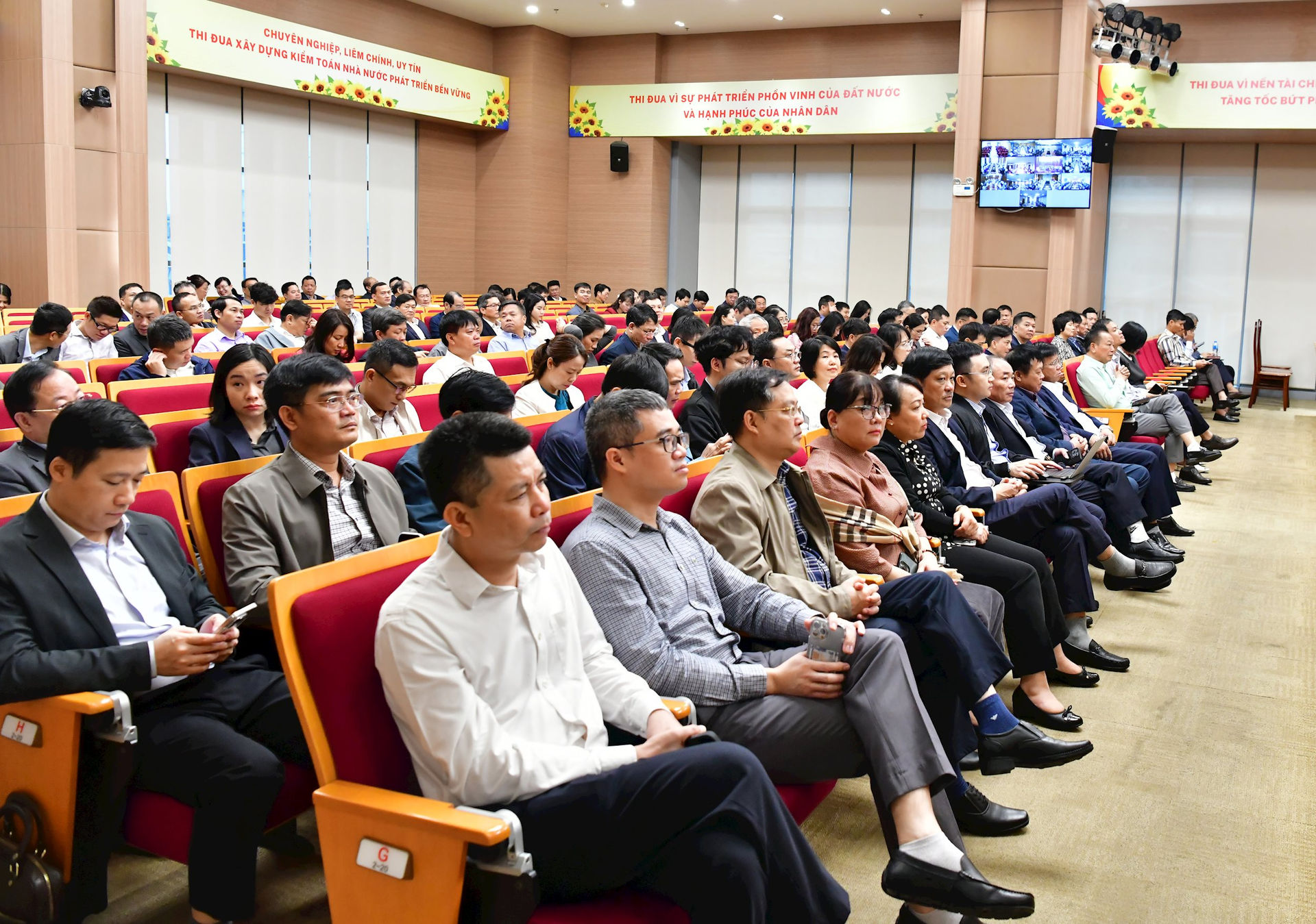 Các đảng viên thuộc Đảng bộ Kiểm toán nhà nước tham dự Hội nghị tại điểm cầu Trụ sở 116 Nguyễn Chánh. Ảnh: M. Thúy