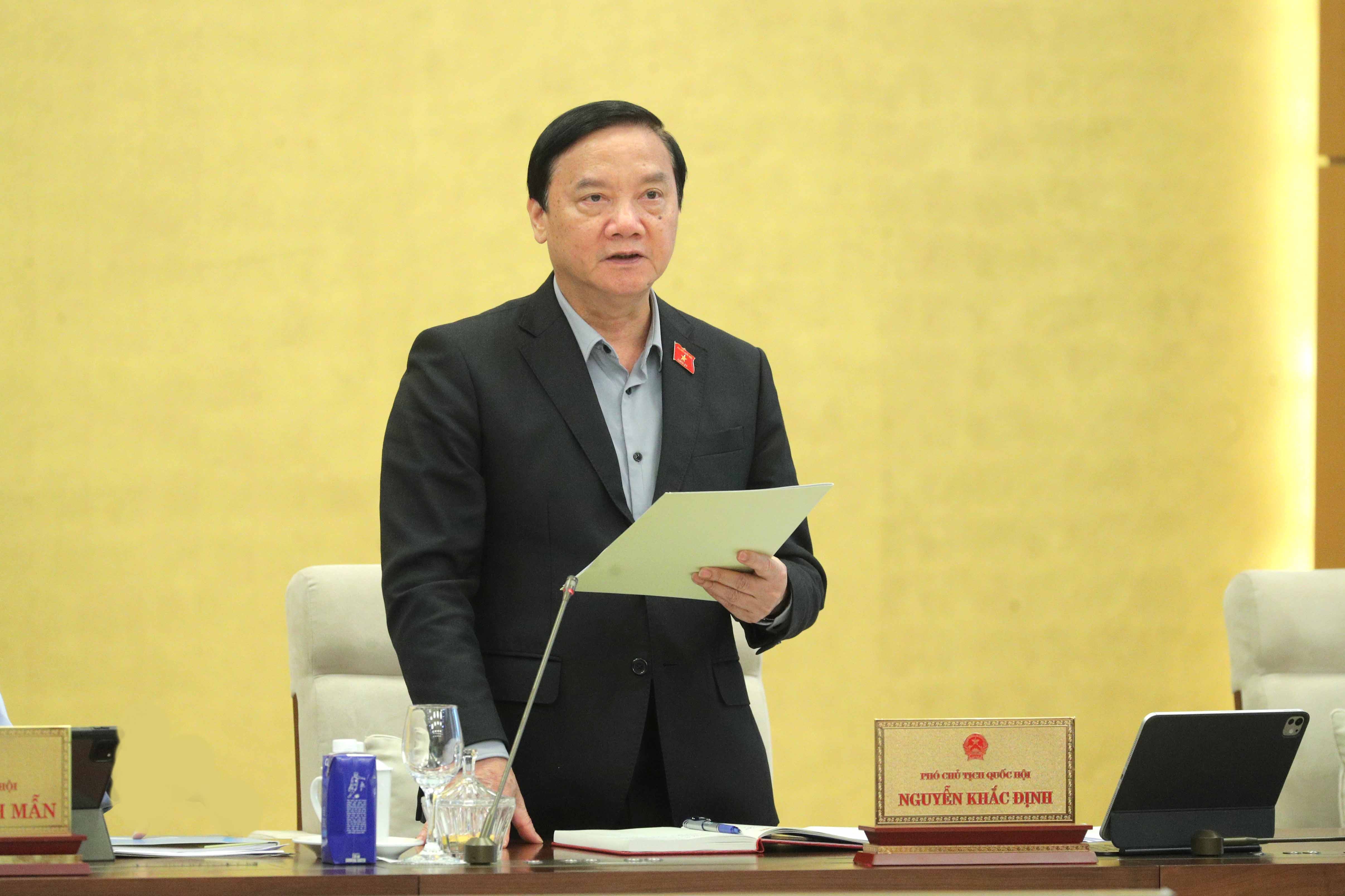 Phát biểu kết luận, Phó Chủ tịch Quốc hội Nguyễn Khắc Định thống nhất về sự cần thiết ban hành 3 dự án Luật; hồ sơ được chuẩn bị khẩn trương, công phu, đúng quy định, đáp ứng yêu cầu đổi mới tư duy lập pháp, đẩy mạnh phân cấp, phân quyền và chuyển đổi số.