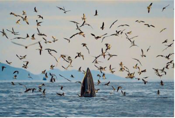 Hình ảnh cá voi ở biển Quy Nhơn (Bộ ảnh "Hành trình theo dấu cá voi Bryde ở vùng biển Nhơn Lý" của tác giả Nguyễn Ngọc Thiện, giành giải đặc biệt và huy chương vàng của Hội Nghệ sĩ Nhiếp ảnh Việt Nam).