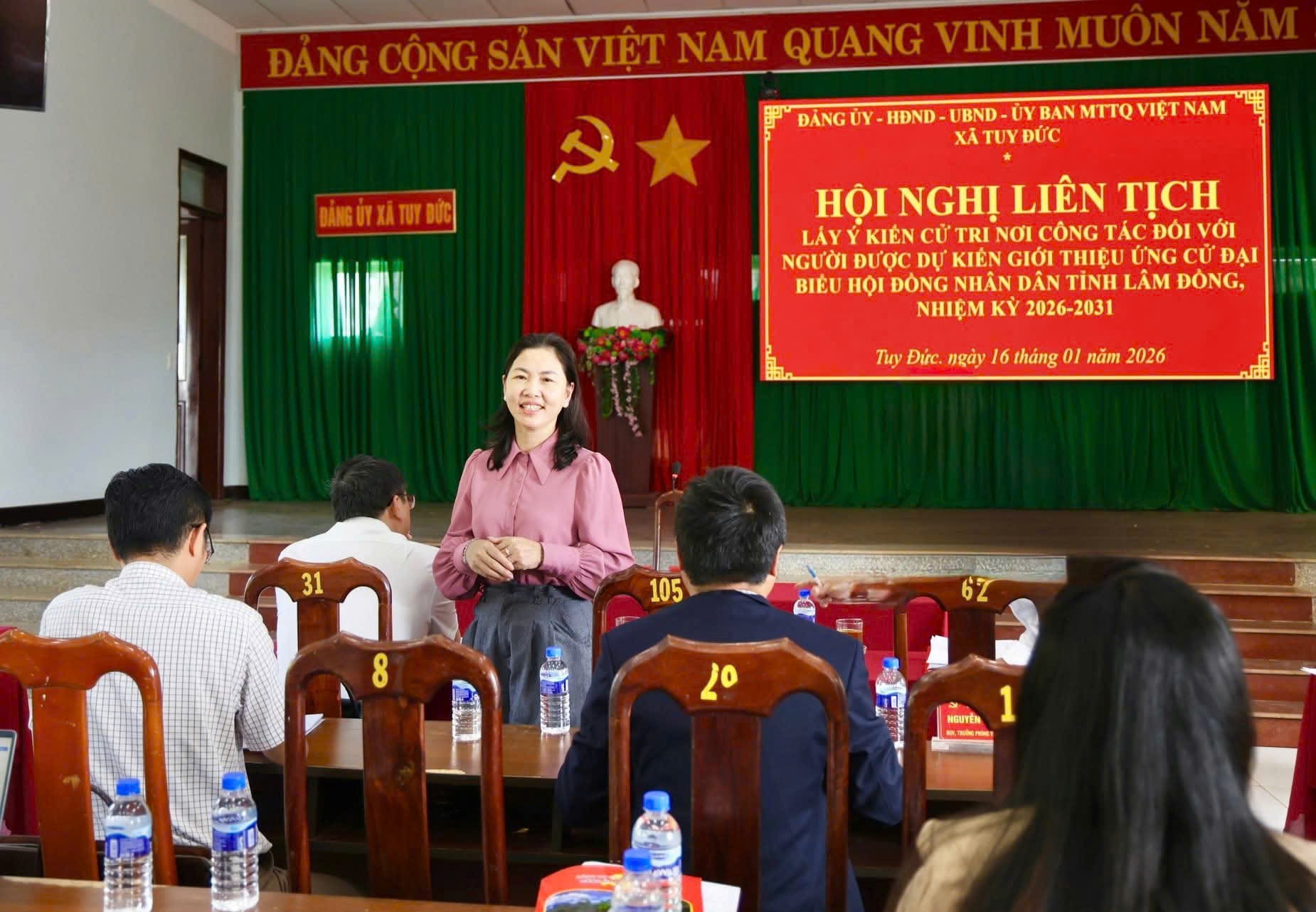 Theo Đảng ủy xã Tuy Đức, vừa qua, địa phương đã tổ chức Hội nghị liên tịch lấy ý kiến cử tri nơi công tác đối với những người được dự kiến giới thiệu ứng cử đại biểu HĐND tỉnh và đại biểu HĐND xã nhiệm kỳ 2026 - 2031. Theo đó, hội nghị đã công bố danh sách 1 người được dự kiến giới thiệu ứng cử đại biểu HĐND tỉnh và 35 người dự kiến giới thiệu ứng cử đại biểu HĐND xã.