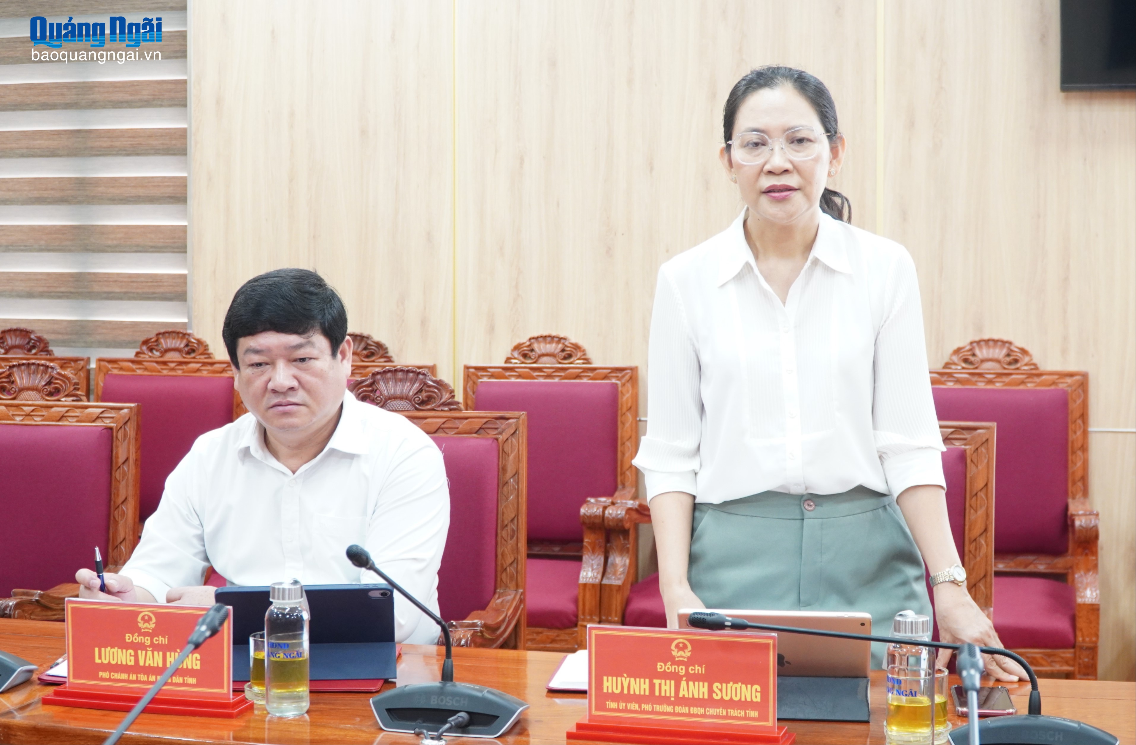 Phó Trưởng đoàn ĐBQH chuyên trách tỉnh Huỳnh Thị Ánh Sương nhấn mạnh, 5 dự thảo luật đều có phạm vi điều chỉnh rộng, liên quan mật thiết đến công tác tư pháp, quản lý nhà nước và quyền con người. Vì vậy, việc lấy ý kiến từ các cơ quan chuyên môn và thực tiễn địa phương có ý nghĩa quan trọng, góp phần hoàn thiện hệ thống pháp luật, bảo đảm đồng bộ, thống nhất và khả thi khi triển khai vào cuộc sống.