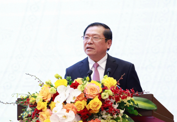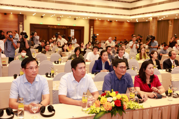 Phó Trưởng Ban Thường trực Ban Tuyên giáo và Dân vận Trung ương Lại Xuân Môn cùng các đồng chí chủ trì họp báo quốc tế.