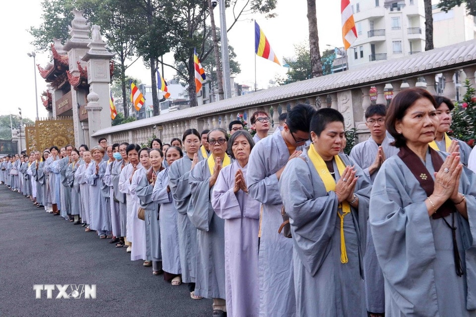 Đông đảo Phật tử tại thành phố Hồ Chí Minh tham dự buổi lễ. (Ảnh: Xuân Khu/TTXVN)
