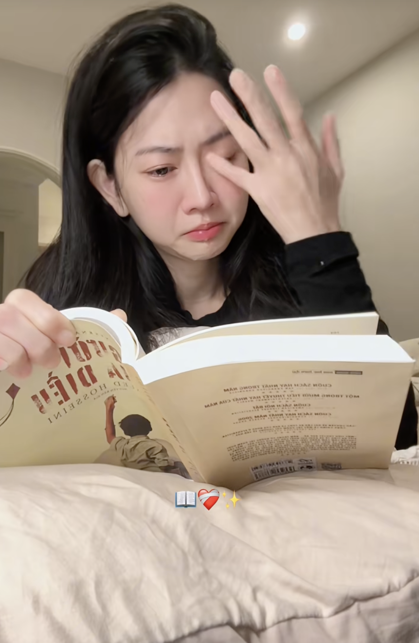 Cụ thể, trong video, Lê Bống khóc nức nở khi đọc cuốn Người Đua Diều. Ở phần chú thích, cô cũng ghi một câu đáng nhớ trong tác phẩm: “For you, a thousand times over” (tạm dịch: “Vì cậu, cả ngàn lần rồi!”).