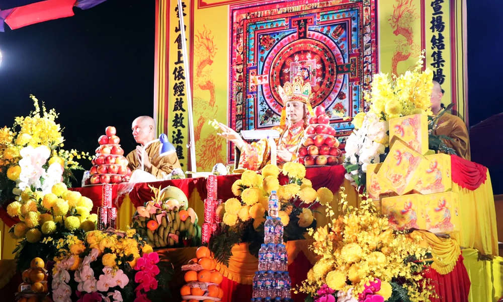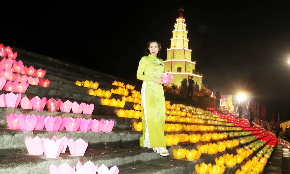 Thắp sáng hoa đăng tại lễ cầu an và hội hoa đăng.