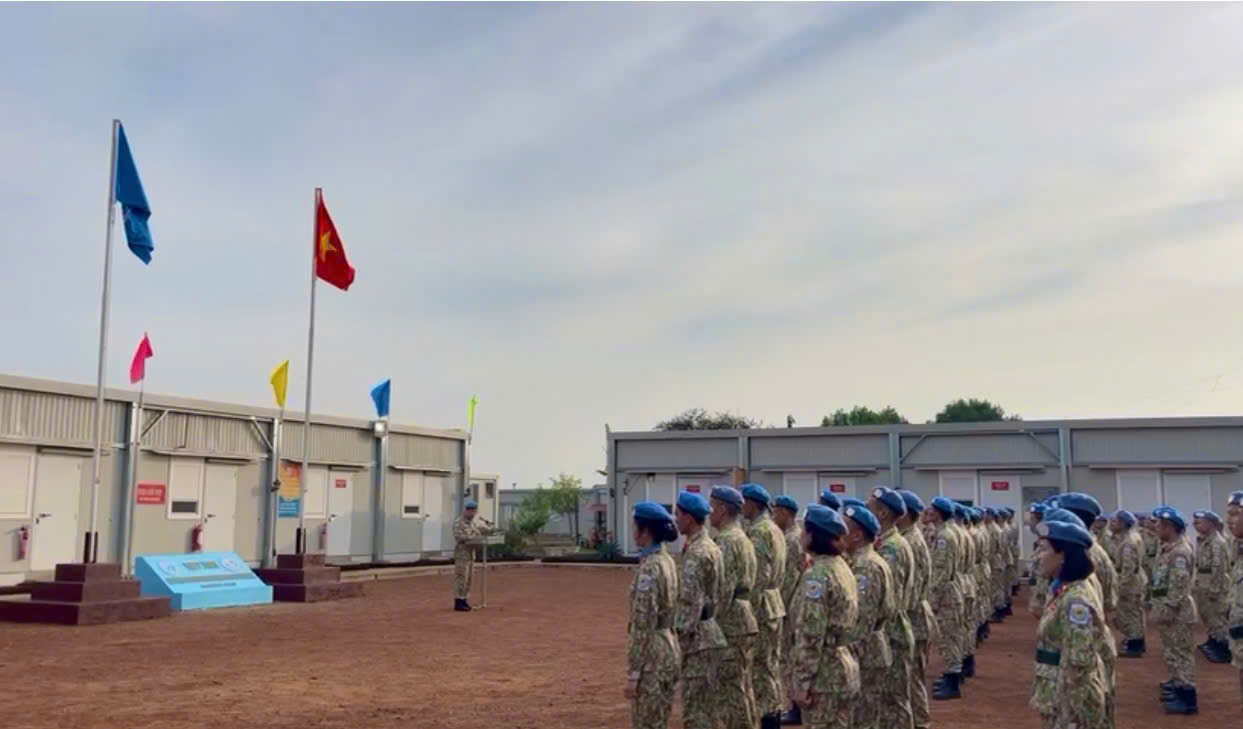 Xúc động lễ chào cờ của những chiến sĩ “mũ nồi xanh” Việt Nam tại vùng đất Abyei