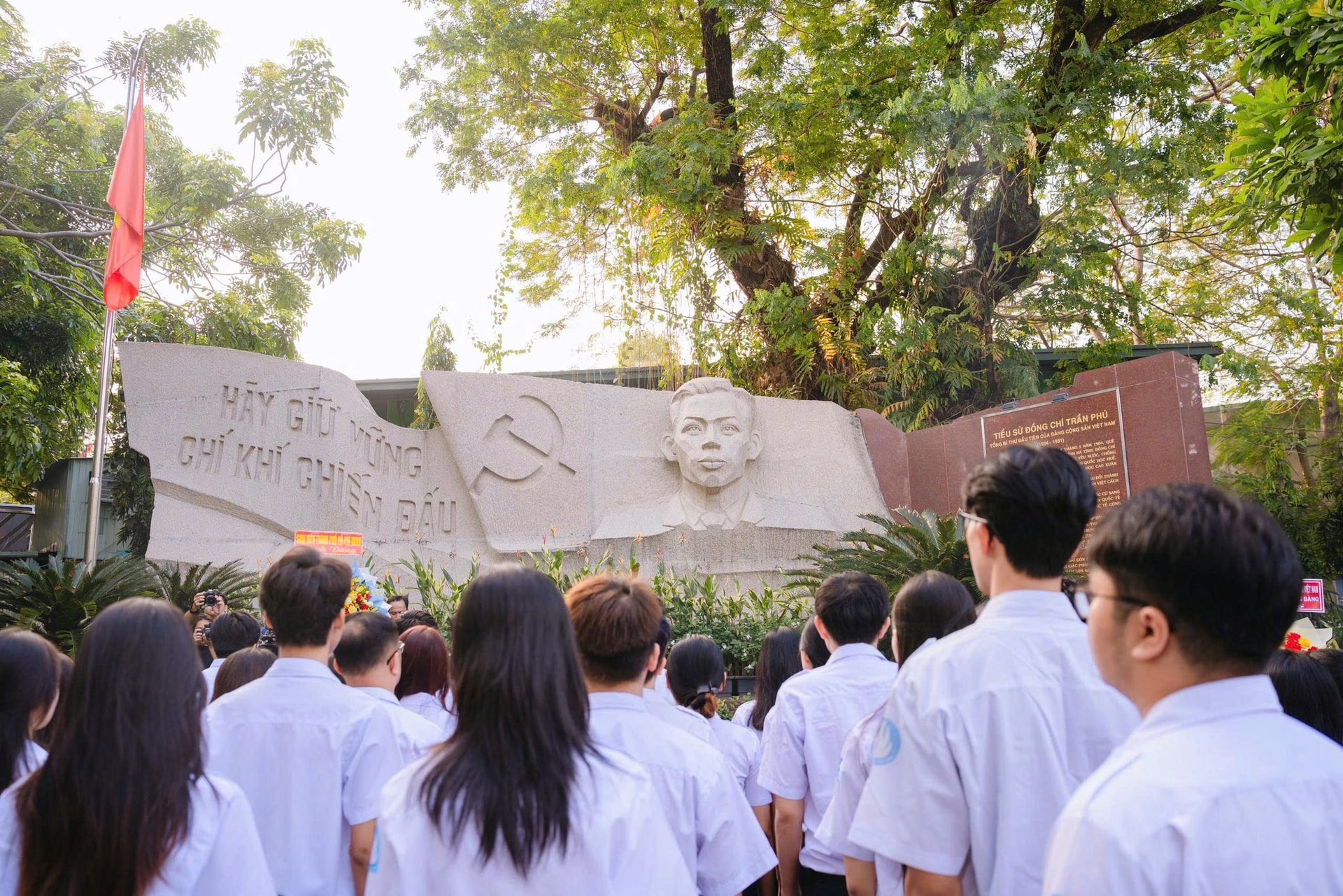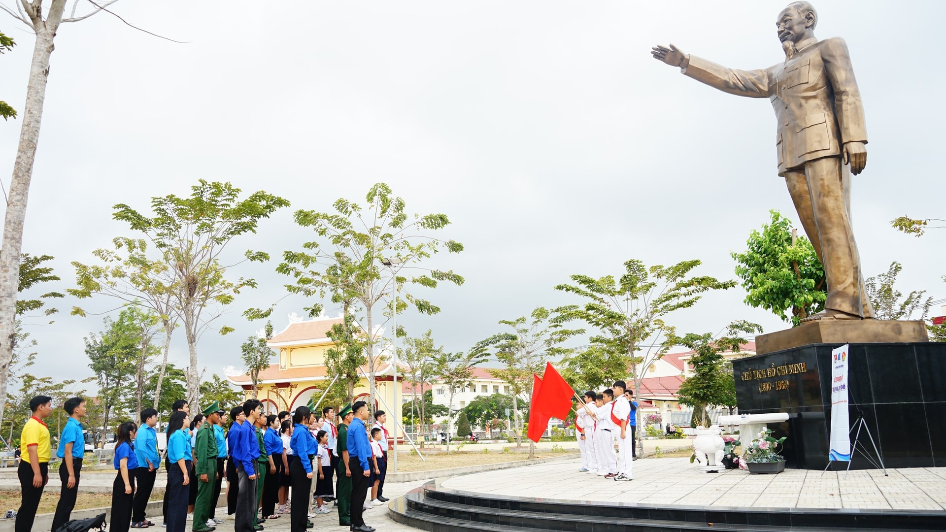 Đoàn đại biểu Thành đoàn thành phố Hồ Chí Minh tổ chức Lễ chào cờ tại Khu lưu niệm Tổng Bí thư Trần Phú. Ảnh: T.Đoàn