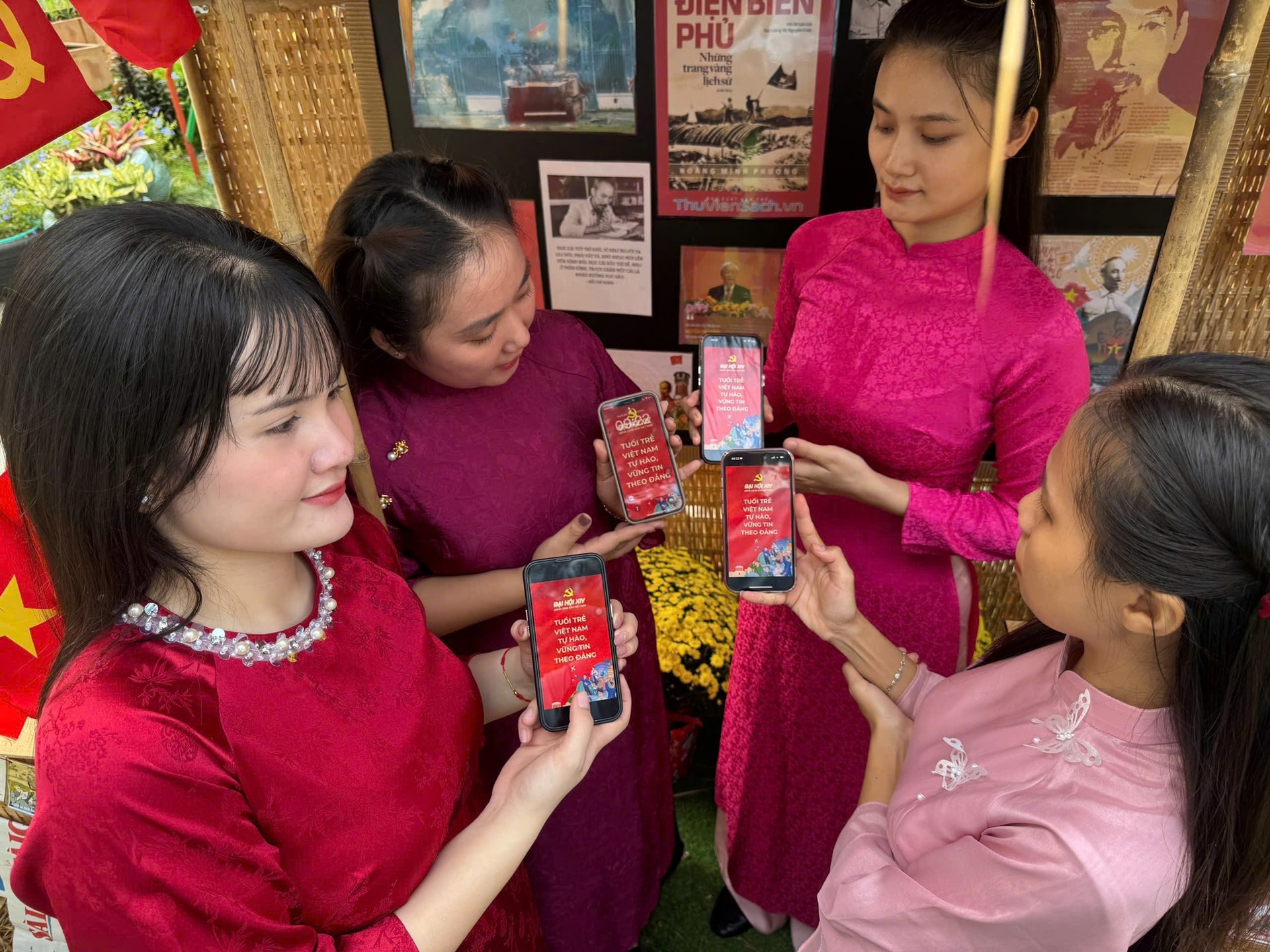 Sau lễ chào cờ, tuổi trẻ phường Sài Gòn đồng loạt "nhuộm đỏ" hình nền điện thoại, máy tính chào mừng Đại hội Đảng.