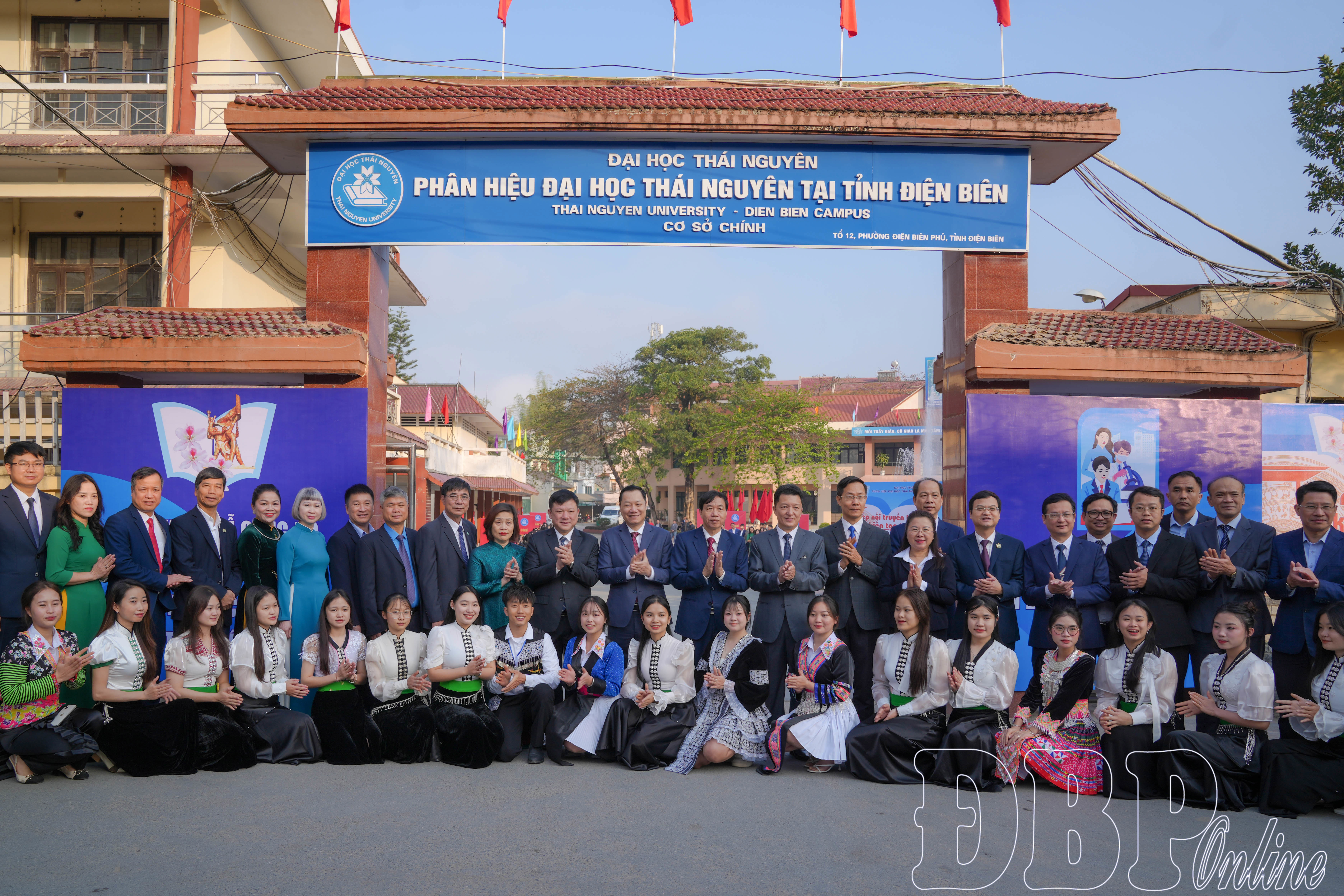 Các đại biểu chụp ảnh lưu niệm với cán bộ giáo viên và sinh viên Phân viện Đại học Thái Nguyên tại Điện Biên.