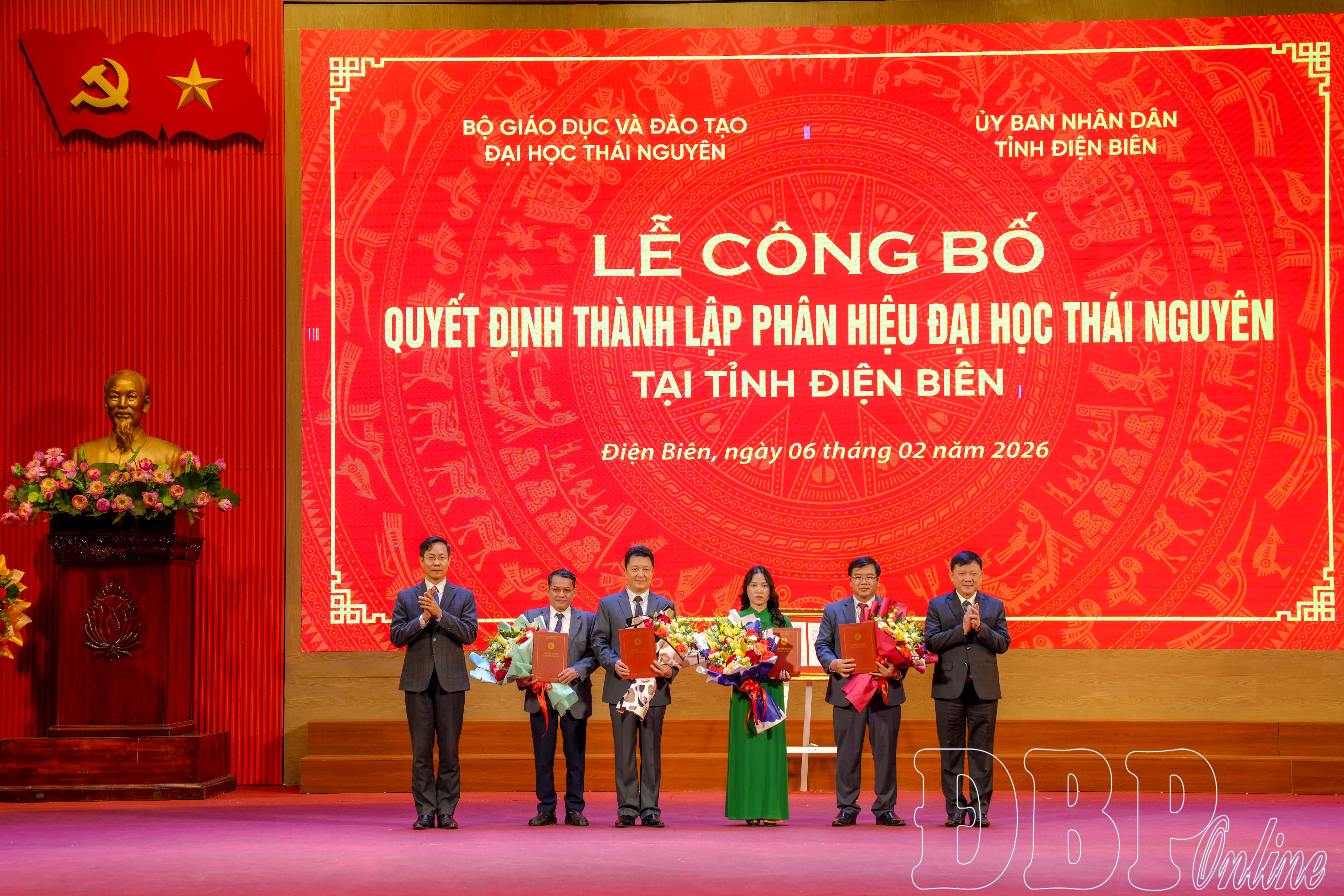 Tại buổi lễ, đại diện Bộ Giáo dục và Đào tạo đã công bố và trao Quyết định số 3333/QĐ-BGDĐT, ngày 1/12/2025 của Bộ trưởng Bộ Giáo dục và Đào tạo về việc thành lập Phân hiệu Đại học Thái Nguyên tại tỉnh Điện Biên trên cơ sở Trường Cao đẳng Sư phạm Điện Biên và Trường Cao đẳng Y tế Điện Biên. Theo Quyết định, Đại học Thái Nguyên có trách nhiệm phối hợp với UBND tỉnh Điện Biên và các bộ, ngành liên quan tổ chức bàn giao, tiếp nhận người học, đội ngũ nhân sự, tài chính, tài sản, cơ sở vật chất, trang thiết bị và hồ sơ, tài liệu theo đúng quy định của pháp luật; đồng thời báo cáo Bộ Giáo dục và Đào tạo về các điều kiện bảo đảm chất lượng giáo dục để Phân hiệu được phép triển khai hoạt động đào tạo.