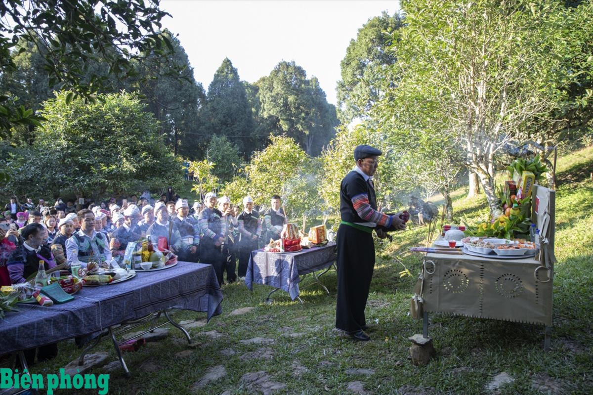Đoàn rước lễ tiến đến khu vực cây chè tổ, nơi có gốc chè cổ thụ to lớn, rêu phong, như một “lão nhân” chứng kiến bao đổi thay của Suối Giàng. Từng mâm lễ được đặt vào vị trí đã chuẩn bị, trong đó, mâm lễ chính của UBND xã được đặt vào vị trí trang trọng nhất, thể hiện sự tôn kính của cả cộng đồng và chính quyền địa phương đối với cây chè tổ. Khi làn hương trầm bắt đầu tỏa khói, già làng cất lời khấn trong tiếng gió đại ngàn. Lời khấn ấy trang nghiêm mà gần gũi, thấm đượm niềm tri ân: “Cầu thần trời, thần đất, thần chè phù hộ, che chở cho vạn vật. Cầu cho mưa thuận gió hòa, người dân mạnh khỏe, làm ăn thuận lợi. Cầu cho bản làng, quê hương, đất nước thái bình, thịnh vượng”.
