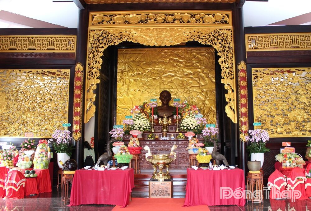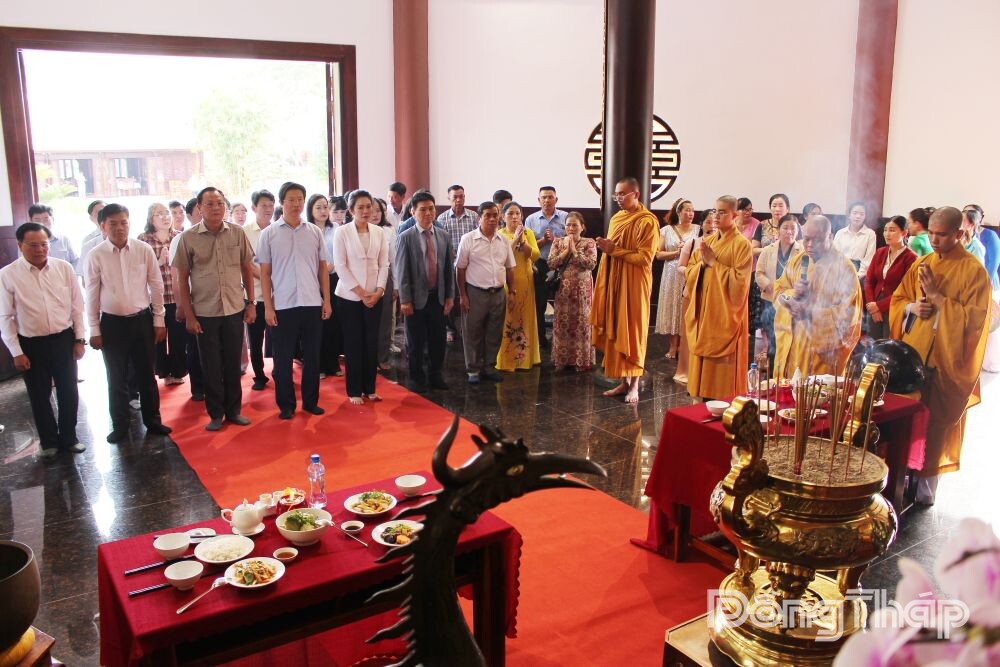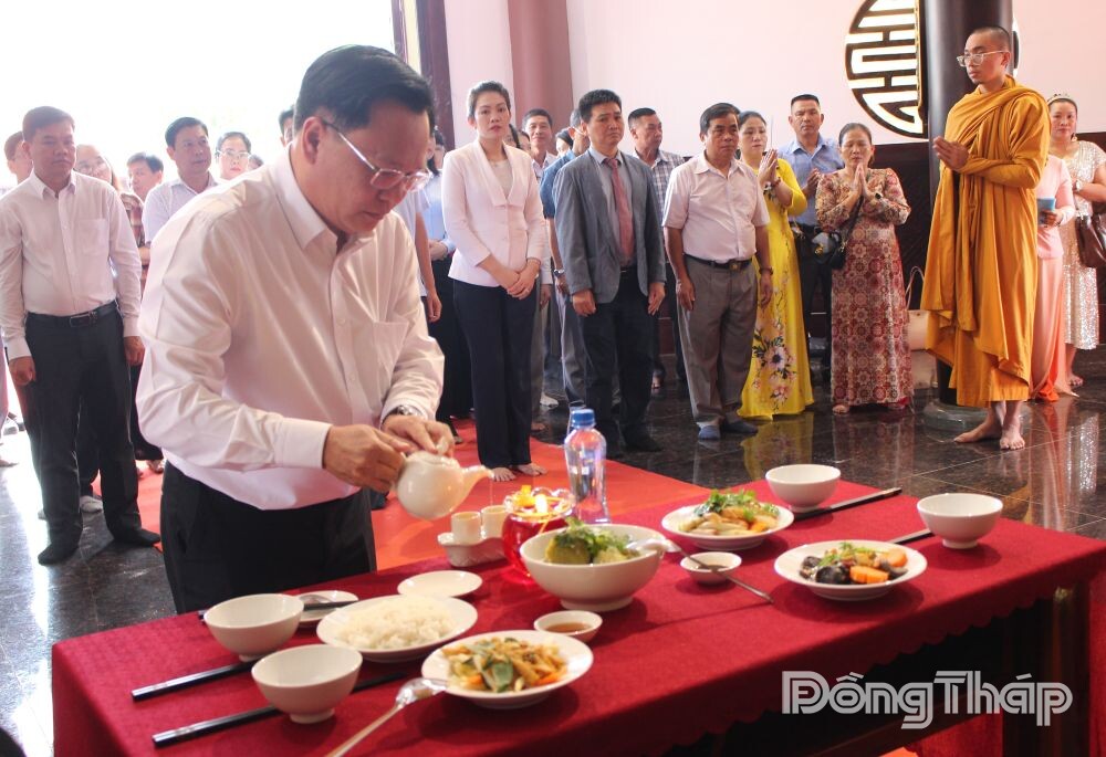 Trong không khí trang nghiêm và thành kính, các đại biểu dâng hương, trà, rượu, cơm và mặc niệm tưởng nhớ Cụ Phó bảng Nguyễn Sinh Sắc - Người đã "gieo mầm" cách mạng trên quê hương Đồng Tháp và đã có công sinh thành, dưỡng dục cho dân tộc Việt Nam vị lãnh tụ vĩ đại - Chủ tịch Hồ Chí Minh kính yêu.