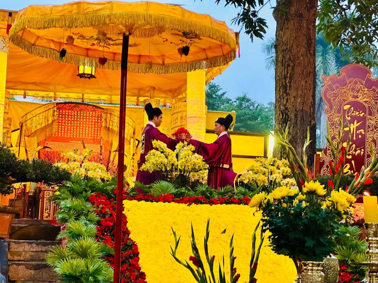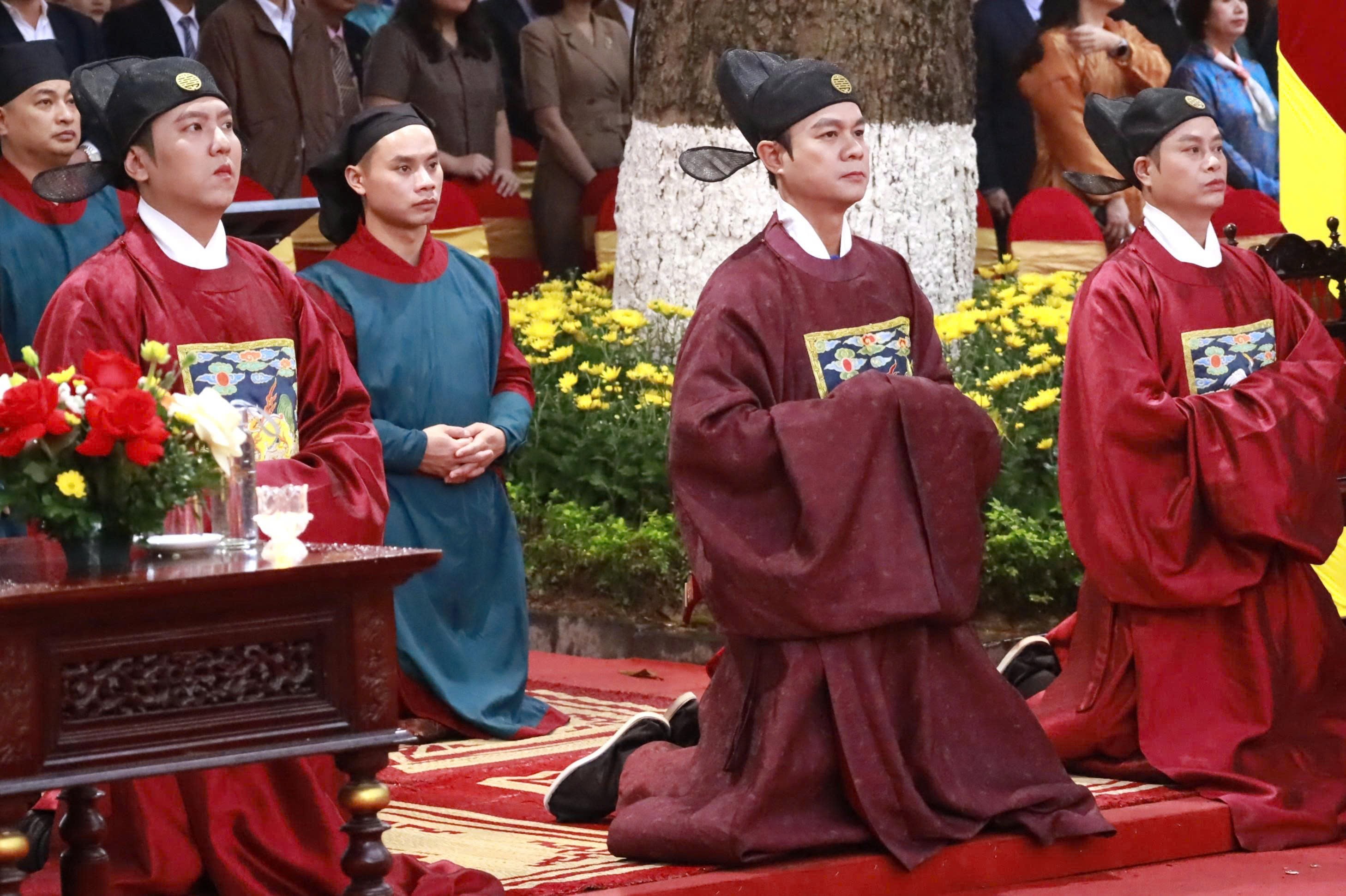 Tái hiện nghi thức các quan triều đình hành lễ.